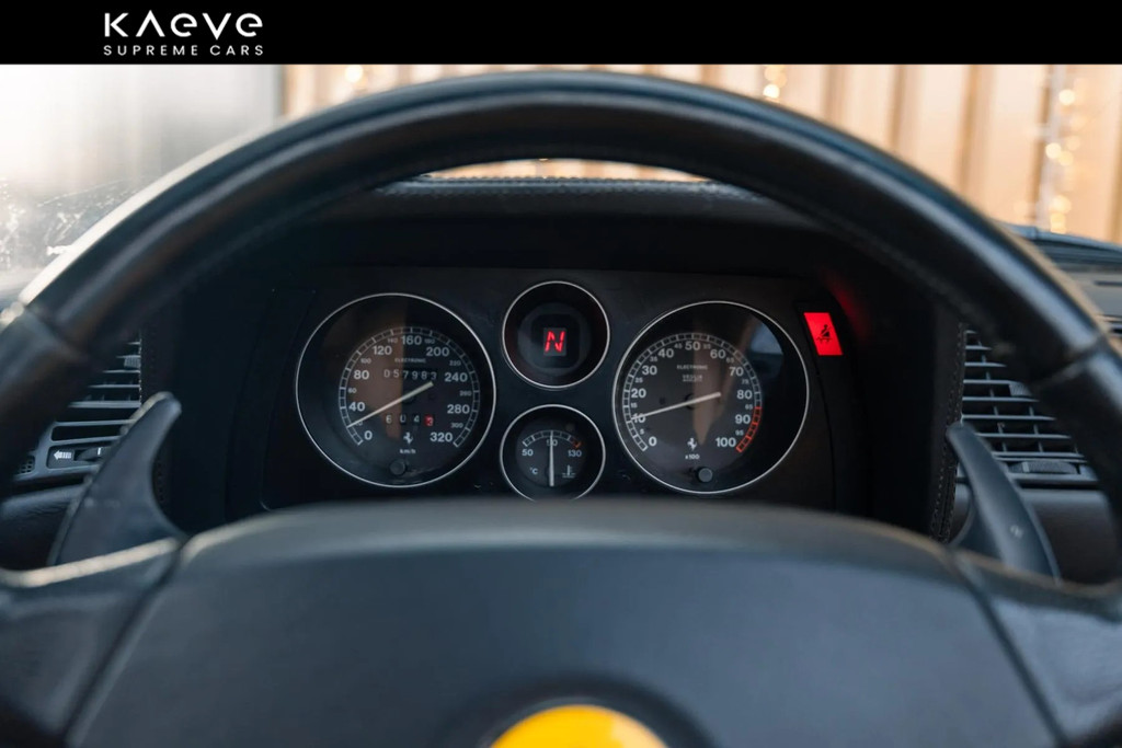 Inside, the beige leather interior remains in fine condition, showcasing the craftsmanship and tactile quality that define Ferrari’s 1990s masterpieces. The electrically operated soft top opens in seconds, offering the full open-air experience for which the Spider was designed.