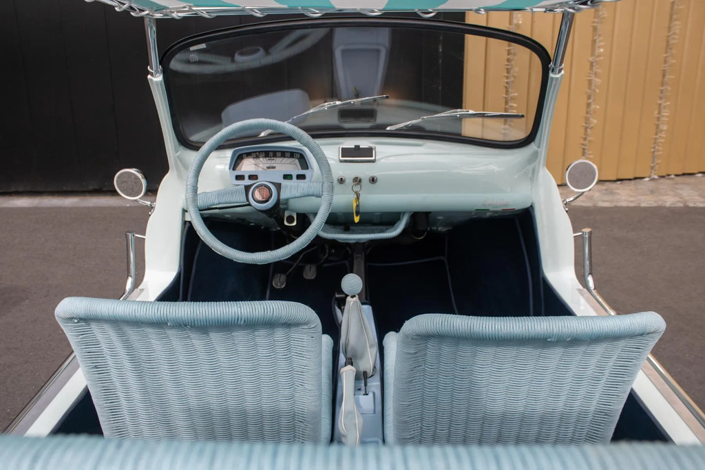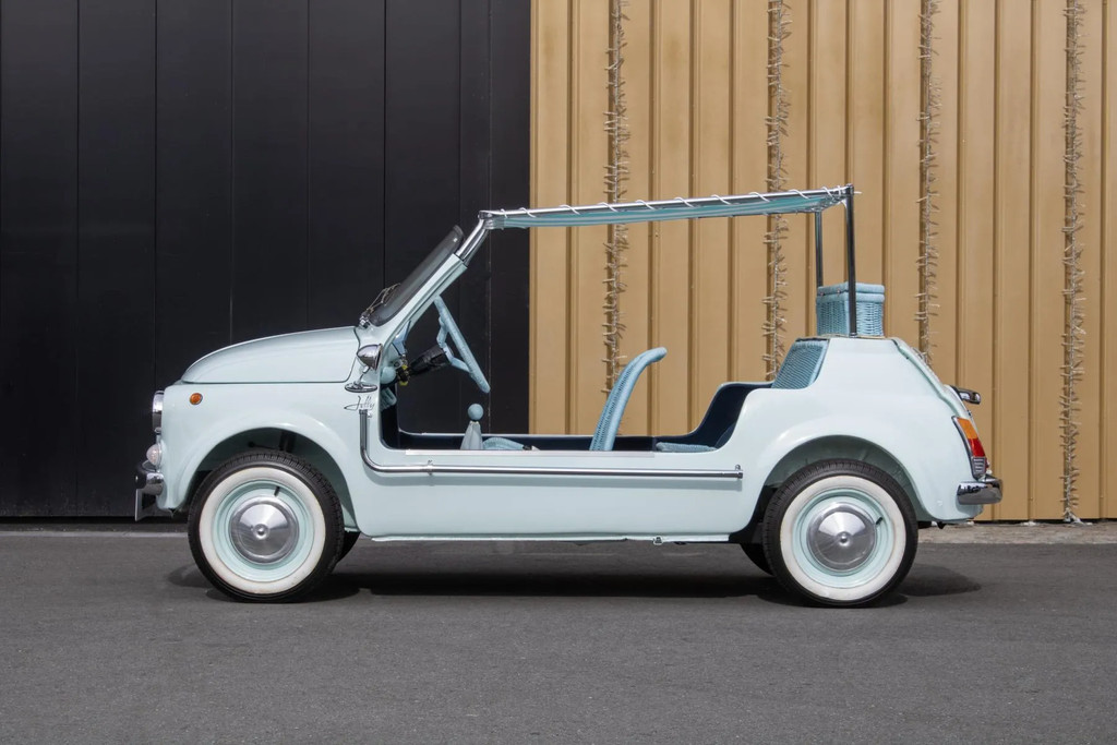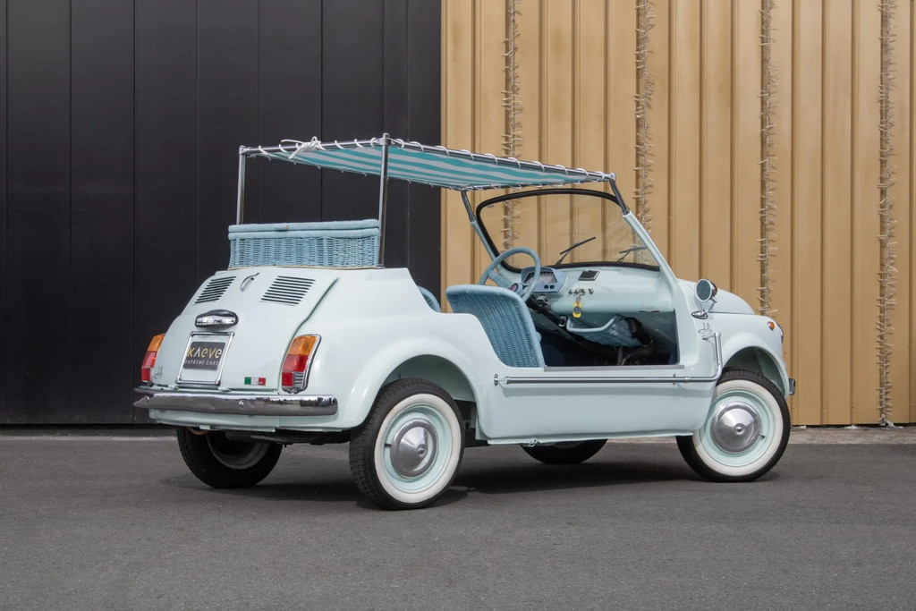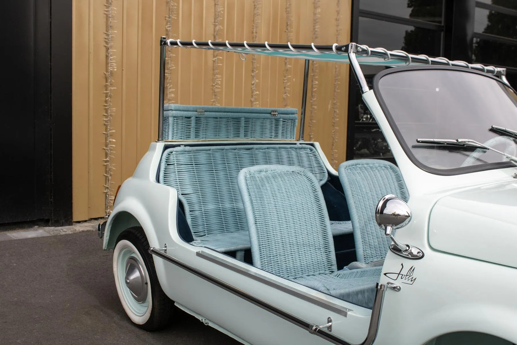 In 1958 kwam de Fiat 500 Jolly op de markt als een soort van minimalistisch boulevardspeeltje voor de rijken. Die auto was helemaal open, een stoffen dak en rieten stoelen. De naam Jolly, dat ‘Joker’ betekent in het Italiaans, werd gebruikt door de Italiaanse carrosseriebouwer Ghia, die vooral Fiat 500’s en 600’s ombouwde naar zulke strandautootjes. Dat idee kwam van Ghia-baas Gigi Segre, die vergelijkbare taxi-auto’s zag op dure vakantieresorts.