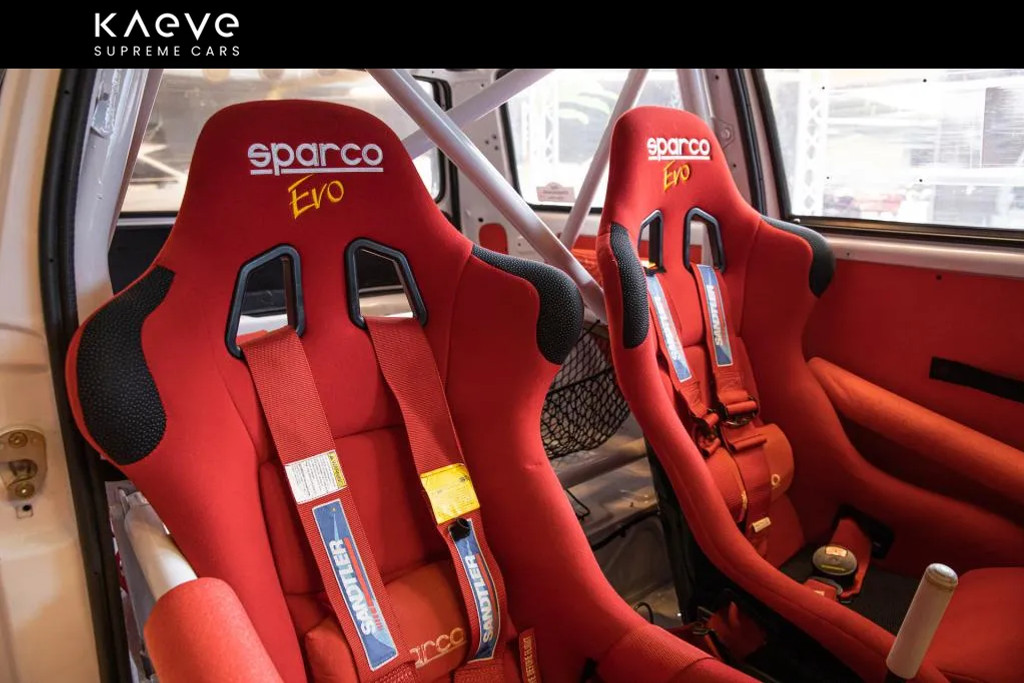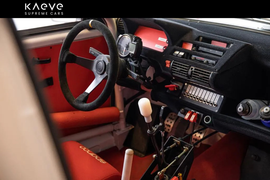 • Race-interieur met Sparco-stoelen, rolkooi en schakelaars voor elke elektrische functie.