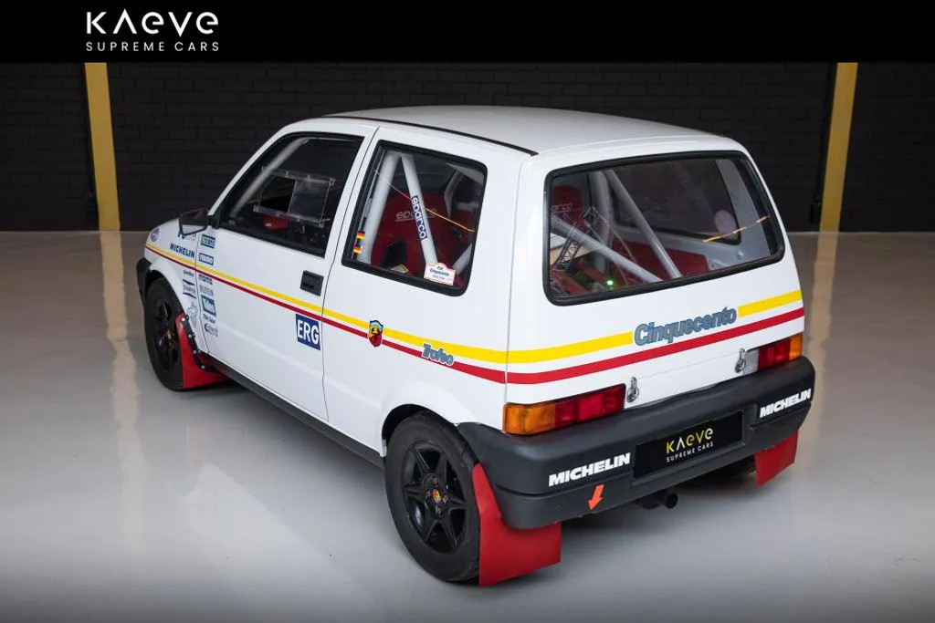 Met een gewicht van slechts 790 kg en 96 pk is deze Cinquecento een lichtgewicht rallyraket. De compromisloze 1.1 conversie en verfijnde raceonderdelen maken dit een unieke kans voor rally- en Fiat-liefhebbers.