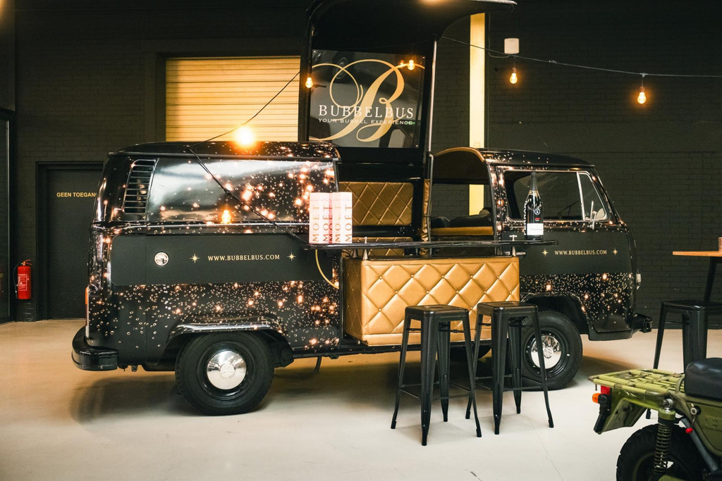 In 2002, the founder of the Bubbelbus saw an old van serving as a cocktail bar on Khao San Road, the most famous entertainment area in Bangkok. This gave him the idea of the Bubbelbus: combining his love for champagne with the atmosphere of that cocktail bar in Thailand into an exclusive champagne bar. The Bubbelbus is originally an old hippie van (VW T2 Transporter). The van has been meticulously restored and converted into a hyper-modern, stylish champagne bar.