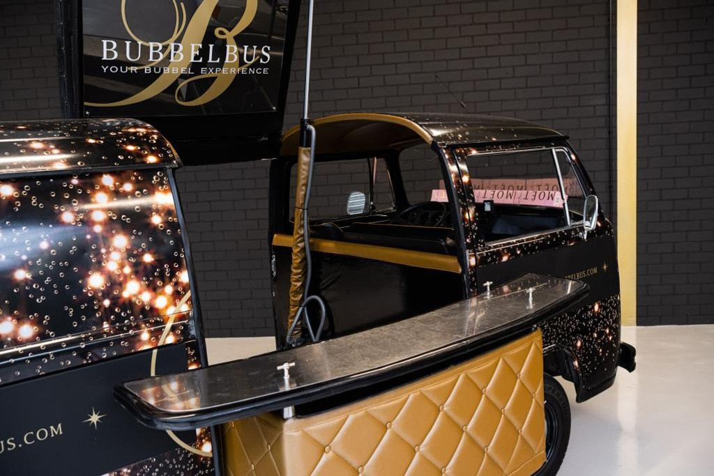 The concept of the Bubbelbus was inspired by an encounter on Khao San Road in Bangkok, where a classic van was used as a cocktail bar. Combined with a passion for champagne, this moment formed the foundation of a unique and elegant concept. The result is a high-end champagne bar with a distinctive character and international appeal.