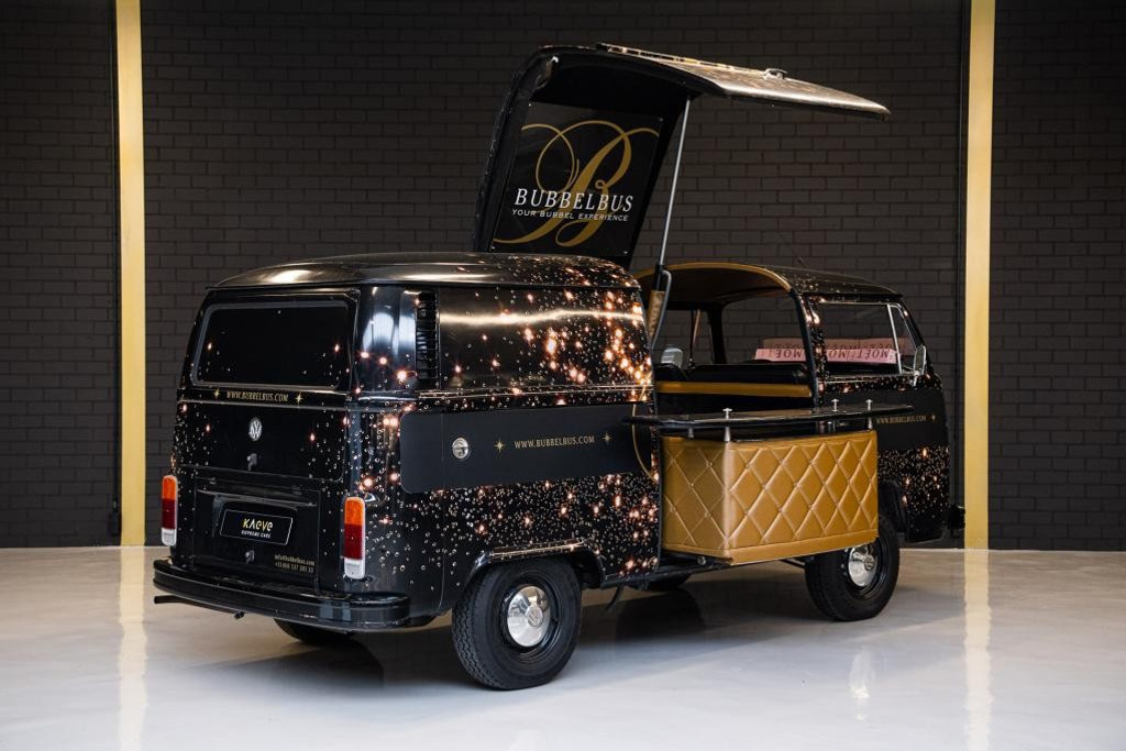 Offered by Kaeve Cars: the Bubbelbus, a beautifully restored 1976 Volkswagen T2 Transporter, converted into an exclusive mobile champagne bar. A true lifestyle object where timeless design, craftsmanship and refined hospitality come together.
