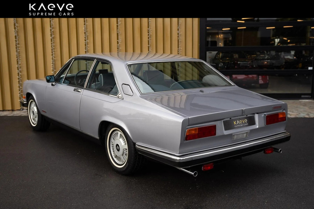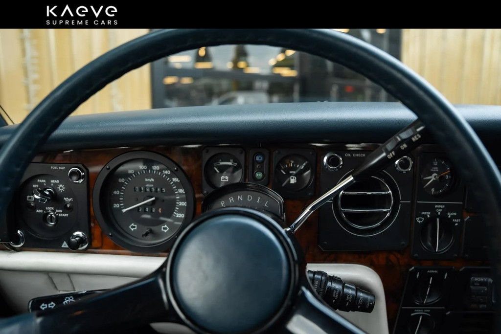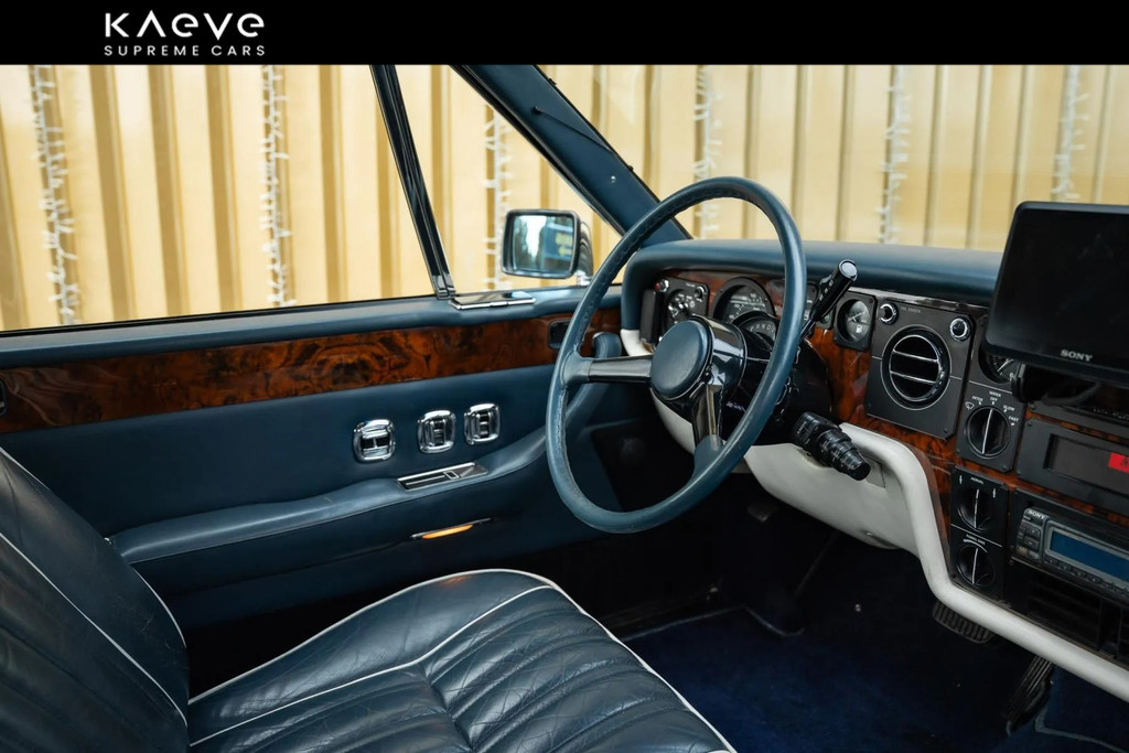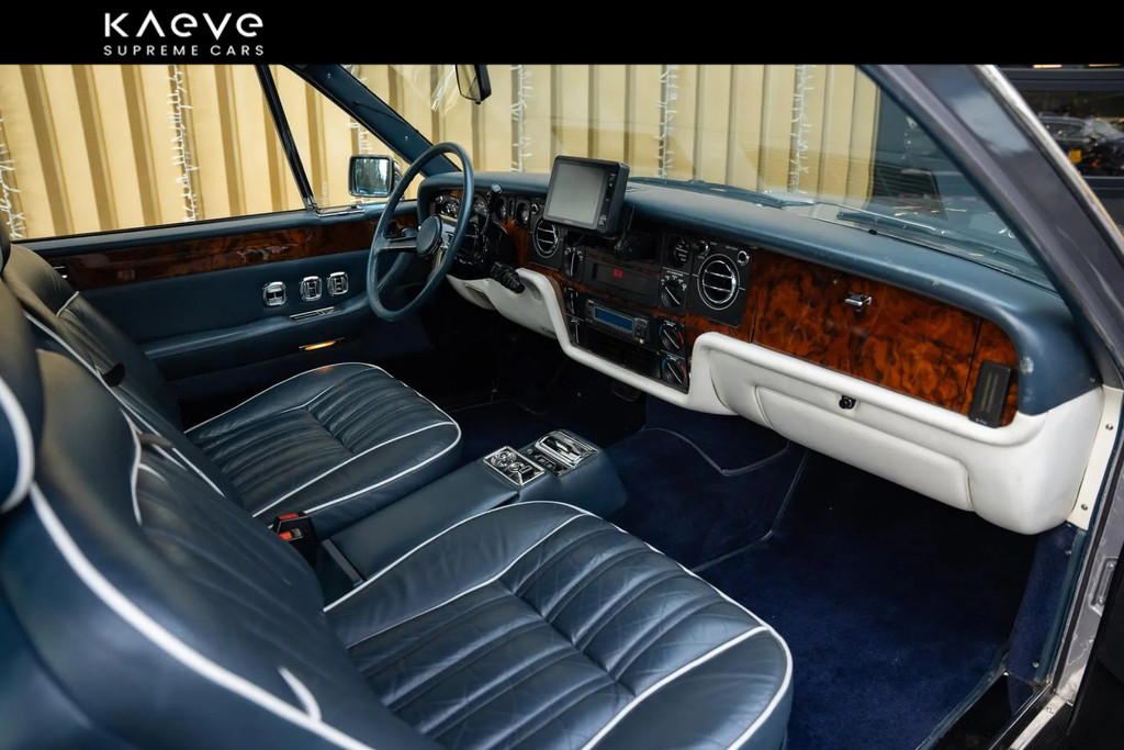 Dit exemplaar betreft een Rolls-Royce Camargue uit 1985, een van de laatste productiejaren van het model. De auto is uitgevoerd in een stijlvolle zilverkleurige carrosserie met een donkerblauw lederen interieur, een klassieke en zeer passende kleurcombinatie voor dit model.