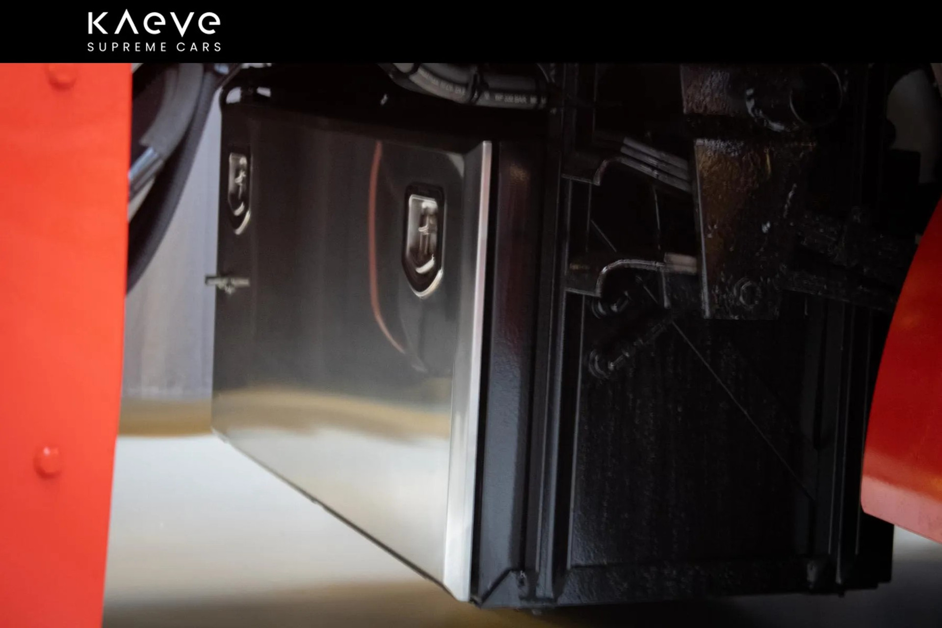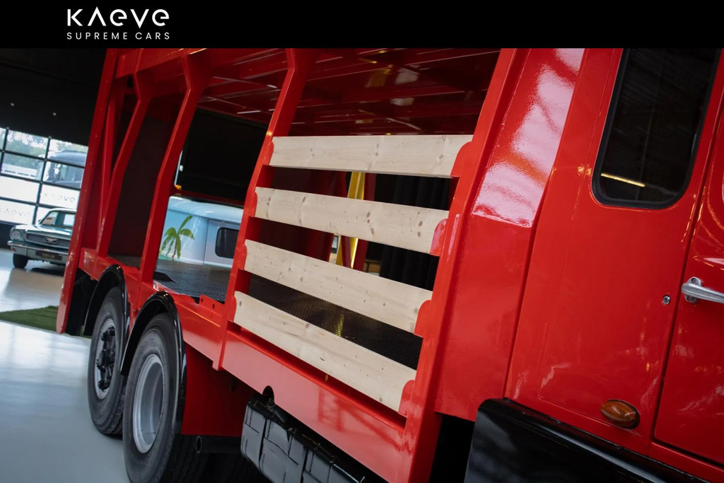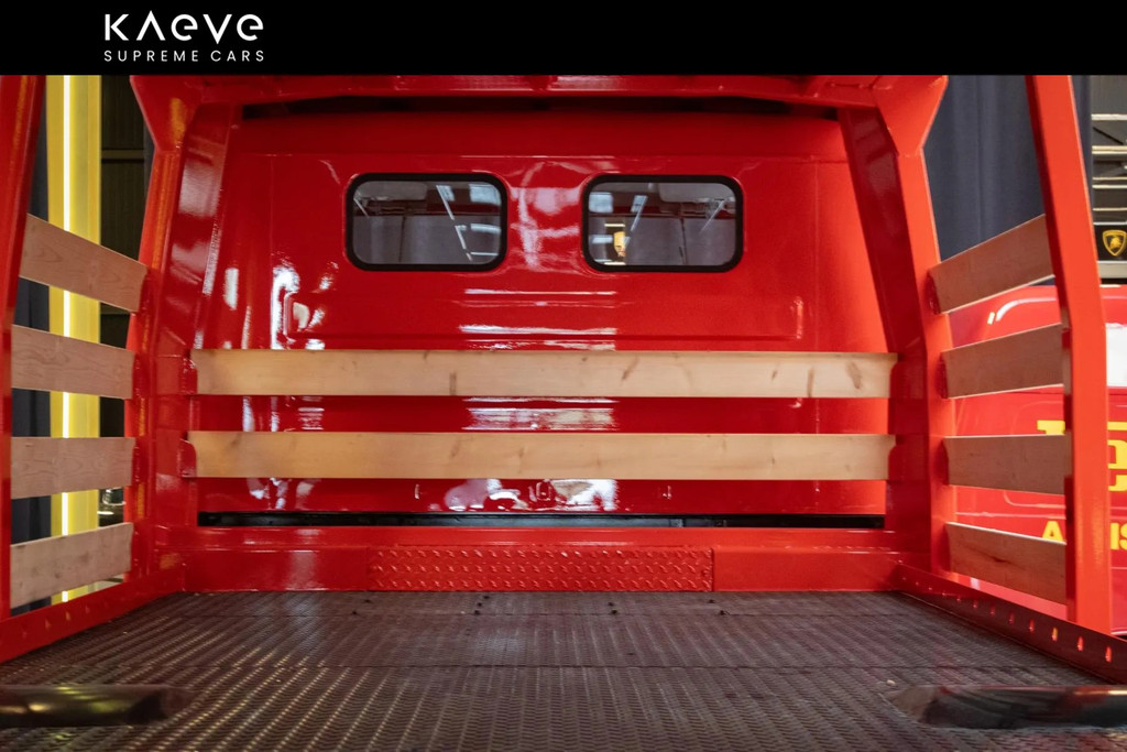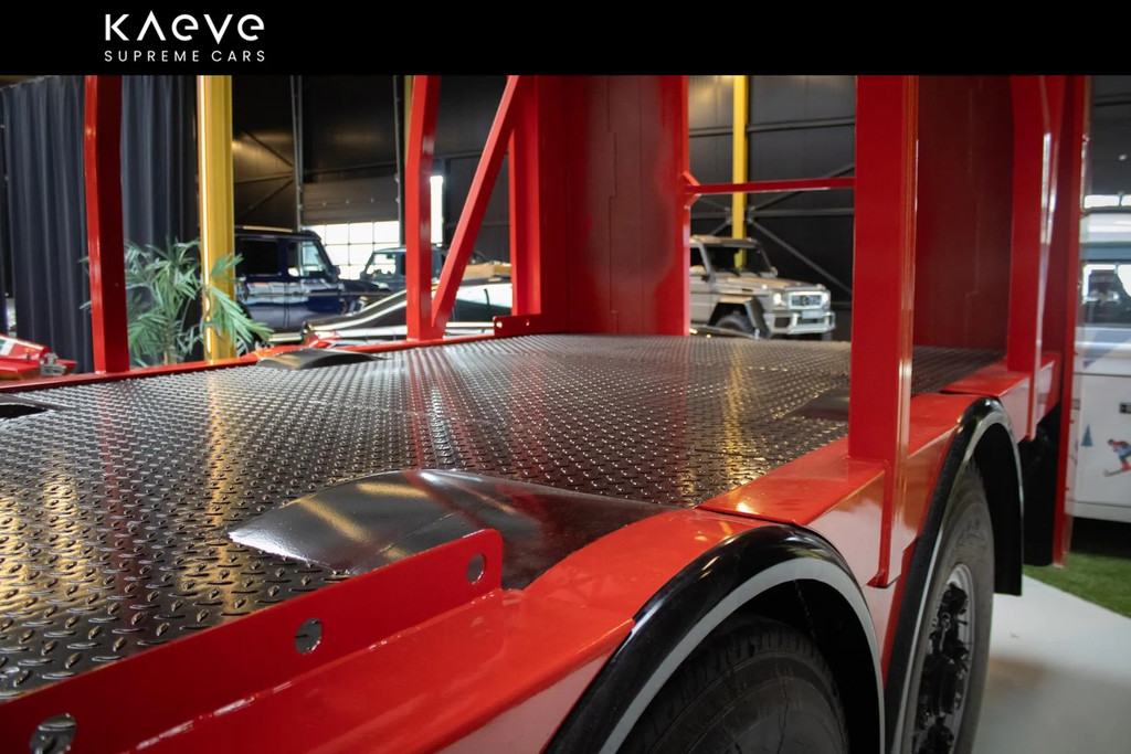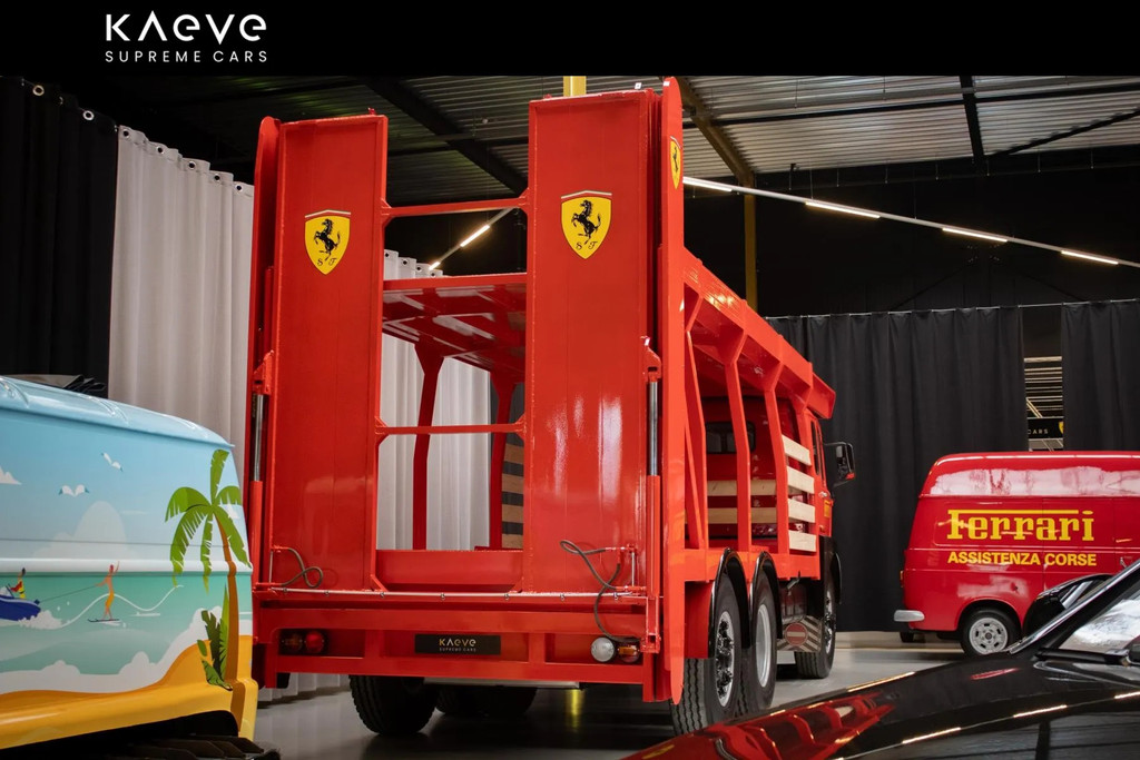Volledig nieuw opgebouwde Ferrari transporter met laadklep waarmee op twee levels auto's geplaatst kunnen worden. Met unieke opties als nieuwe opbergkisten, handgeschilderde Ferrari schilden en houten frames is dit een prachtige 682N.