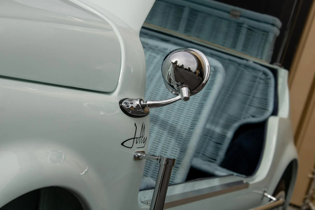 Dit betreft een gerestaureerde Fiat 500, gebouwd tot Jolly.