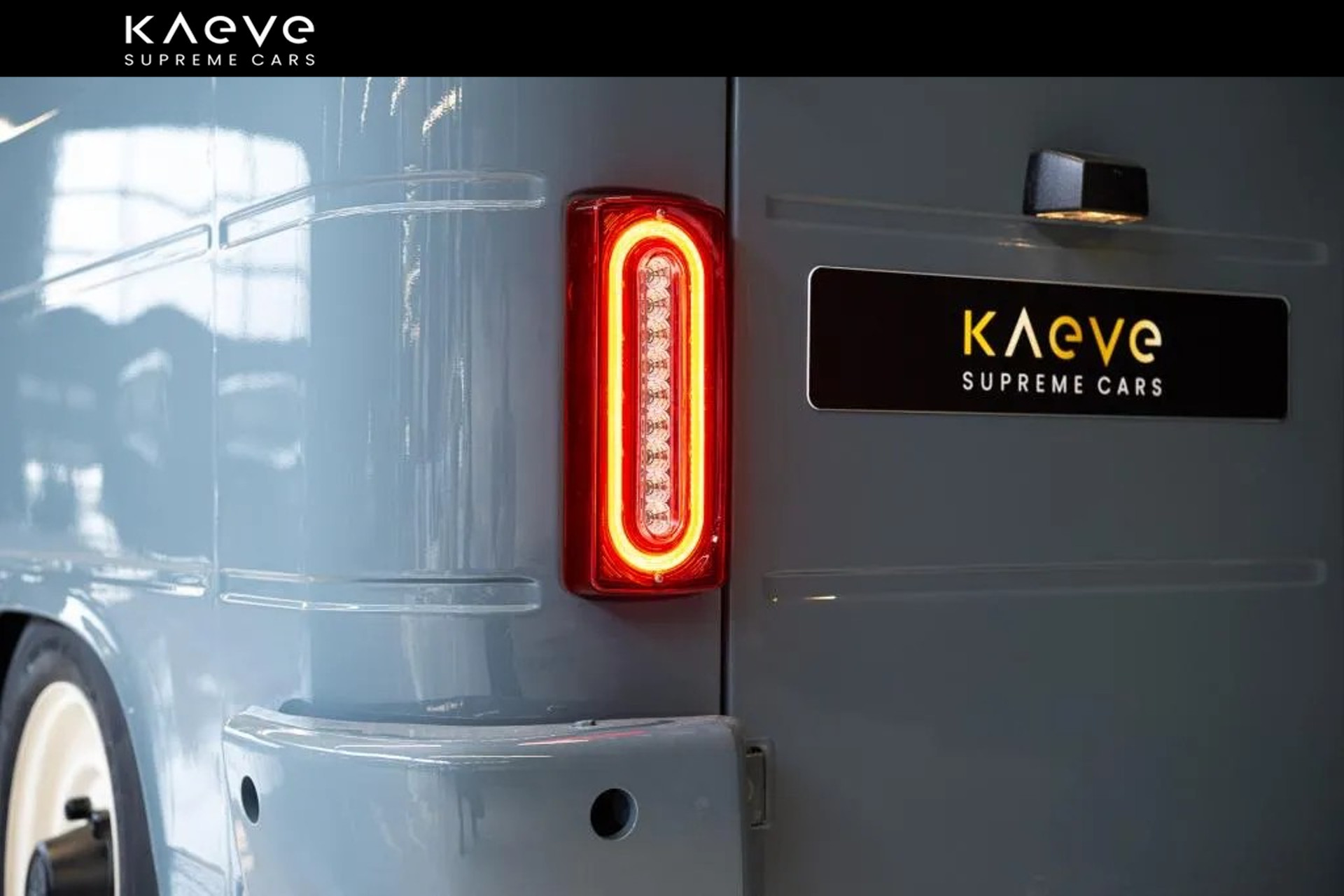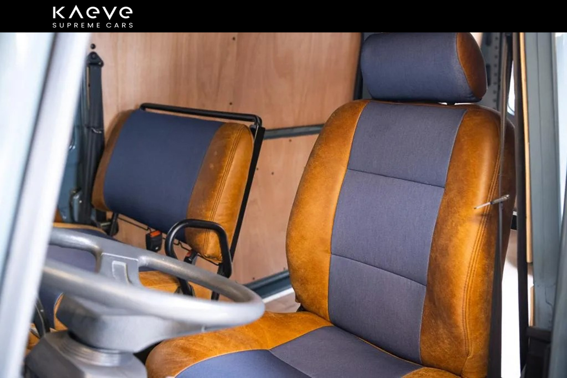 Dieser Camper wurde kürzlich mit einem frischen, stilvollen Look versehen. Das Äußere ist klassisch blau und das Innere wurde komplett neu bezogen mit einer wunderschönen Kombination aus cognacbraunem Leder und dunkelblauem Stoff. Der Sitzbereich mit bequemen Bänken und einem Tisch kann leicht in ein Doppelbett umgewandelt werden. Der Camper ist mit einer modernen Küche ausgestattet, einschließlich Herd, Spüle und Kühlschrank.