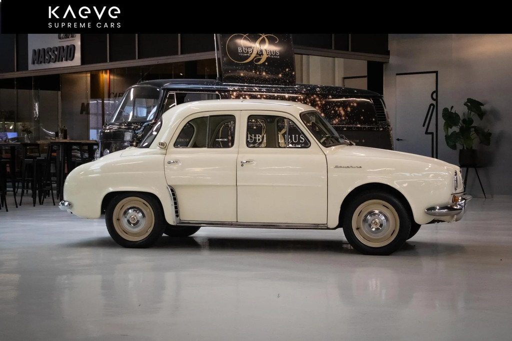 The interior is in good condition and complements the timeless design of the car. The upholstery is well-maintained and the dashboard has a nostalgic look. The Renault Dauphine offers a pleasant driving experience.
