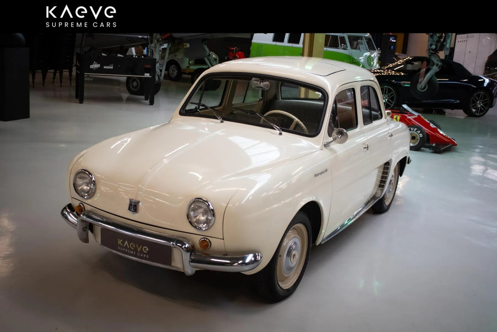 Ein wunderschöner weißer Renault Dauphine mit nur 42.043 Kilometern auf dem Tacho. Dieser Klassiker, mit dem Kennzeichen RH-69-ST, wurde gut gepflegt und verfügt über ein Schaltgetriebe. Es ist ein schöner Oldtimer, perfekt für gemütliche Fahrten und Autoausstellungen.