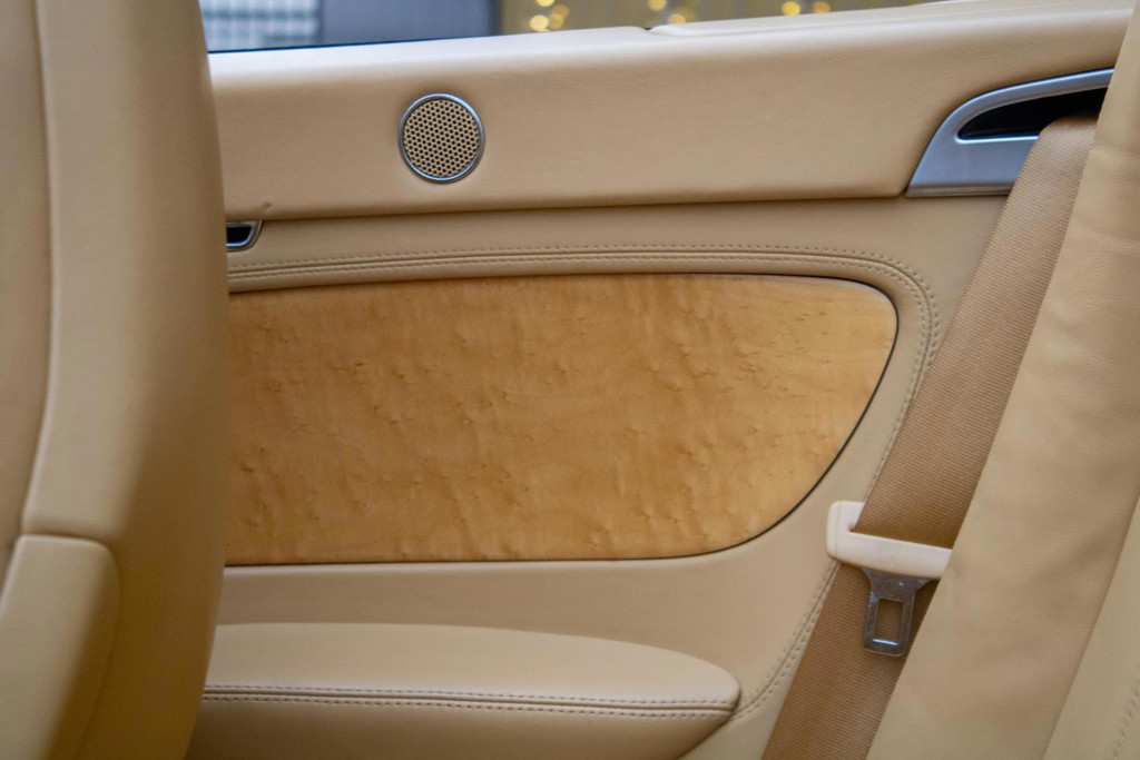 De buitenzijde is afgewerkt in een stijlvolle Silver Tempest lak, die perfect harmonieert met het luxueuze Safron lederen interieur. De elegante afwerking met licht notenhouten details benadrukt het vakmanschap waar Bentley om bekendstaat en tilt de ambiance naar een ongeëvenaard niveau.