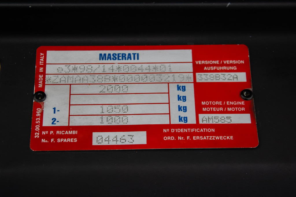 With only 29,168 kilometers on the odometer, this example is in exceptionally well-preserved original condition. The paintwork is deep and flawless, the interior immaculate, and both wheels and tires remain unmarked. All options and accessories function perfectly, while the air conditioning provides refreshing coolness, reflecting the meticulous care this Maserati has received.