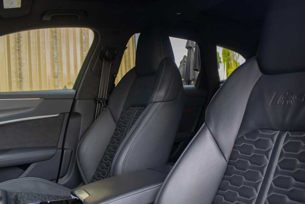 Het is een auto die direct laat zien waar Audi voor staat: een brute 4.0-liter twin-turbo V8, Dynamic Plus-uitvoering met een topsnelheid van 305 km/u en keramische remmen die zowel krachtig als visueel indrukwekkend zijn. Het RS sportonderstel met Dynamic Ride Control voelt als een verlengstuk van de bestuurder – direct, communicatief en met een balans die je zelden tegenkomt in een auto met luchtvering. Vierwielsturing maakt hem wendbaar in de stad en feilloos stabiel op hoge snelheid.