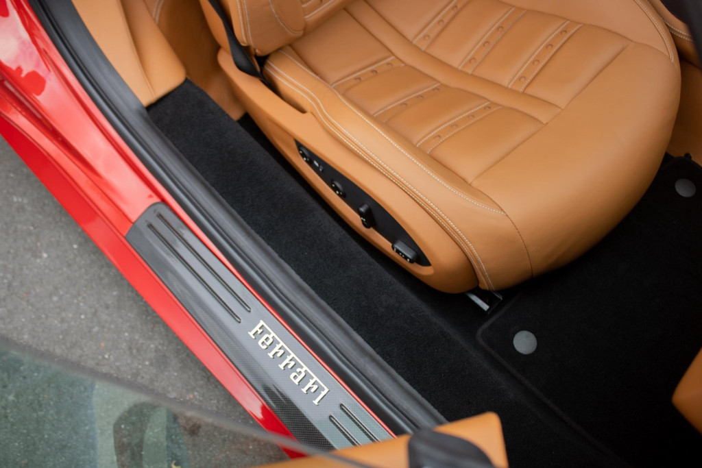 Technologically, the Ferrari is well-equipped with a navigation and audio system with Bluetooth, a Premium Hi-Fi sound system, rear-view camera, and front and rear parking sensors for comfort and safety. The HELE system (High Emotion Low Emission) improves efficiency and reduces emissions without compromising performance.