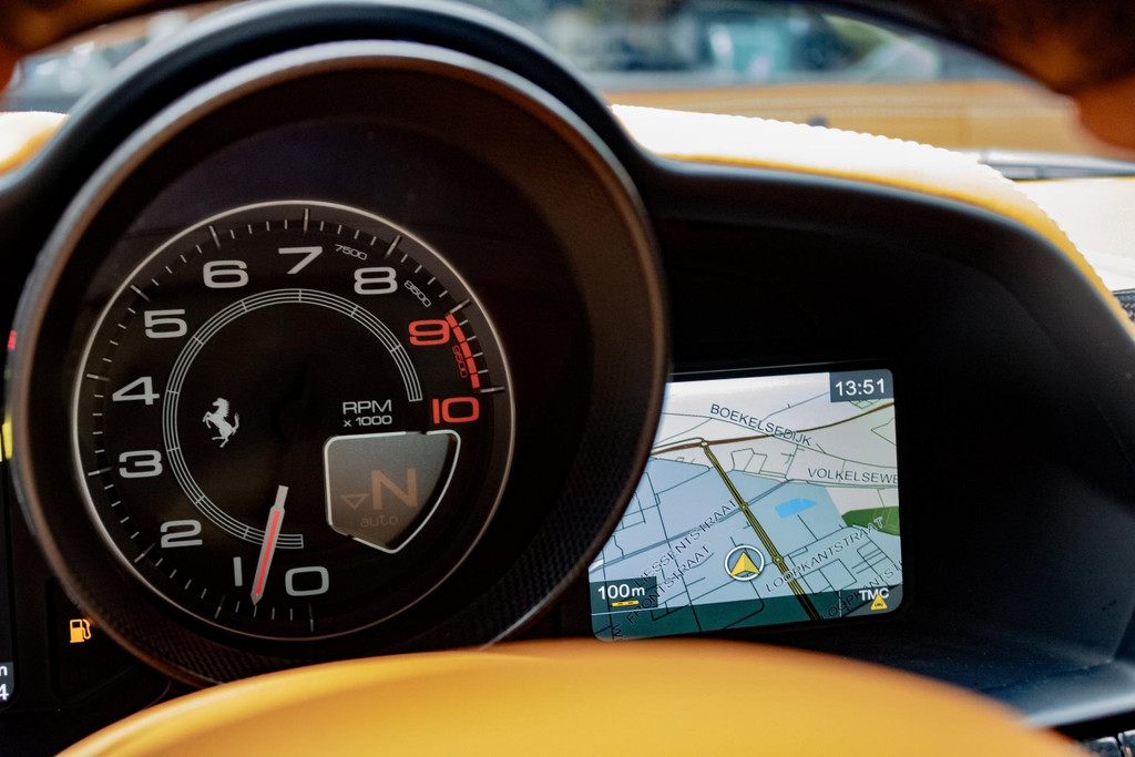 Voor wie houdt van sportieve accenten, is deze 458 voorzien van een uitgebreid carbon interieurpakket. Dit omvat onder andere een carbon stuurwiel met geïntegreerde LED-shiftlights, carbon inlegstukken op het dashboard, een carbon middenconsole, carbon instaplijsten en carbon portierpanelen. Deze elementen versterken het race-DNA van de auto en geven het interieur een moderne, hoogwaardige uitstraling.