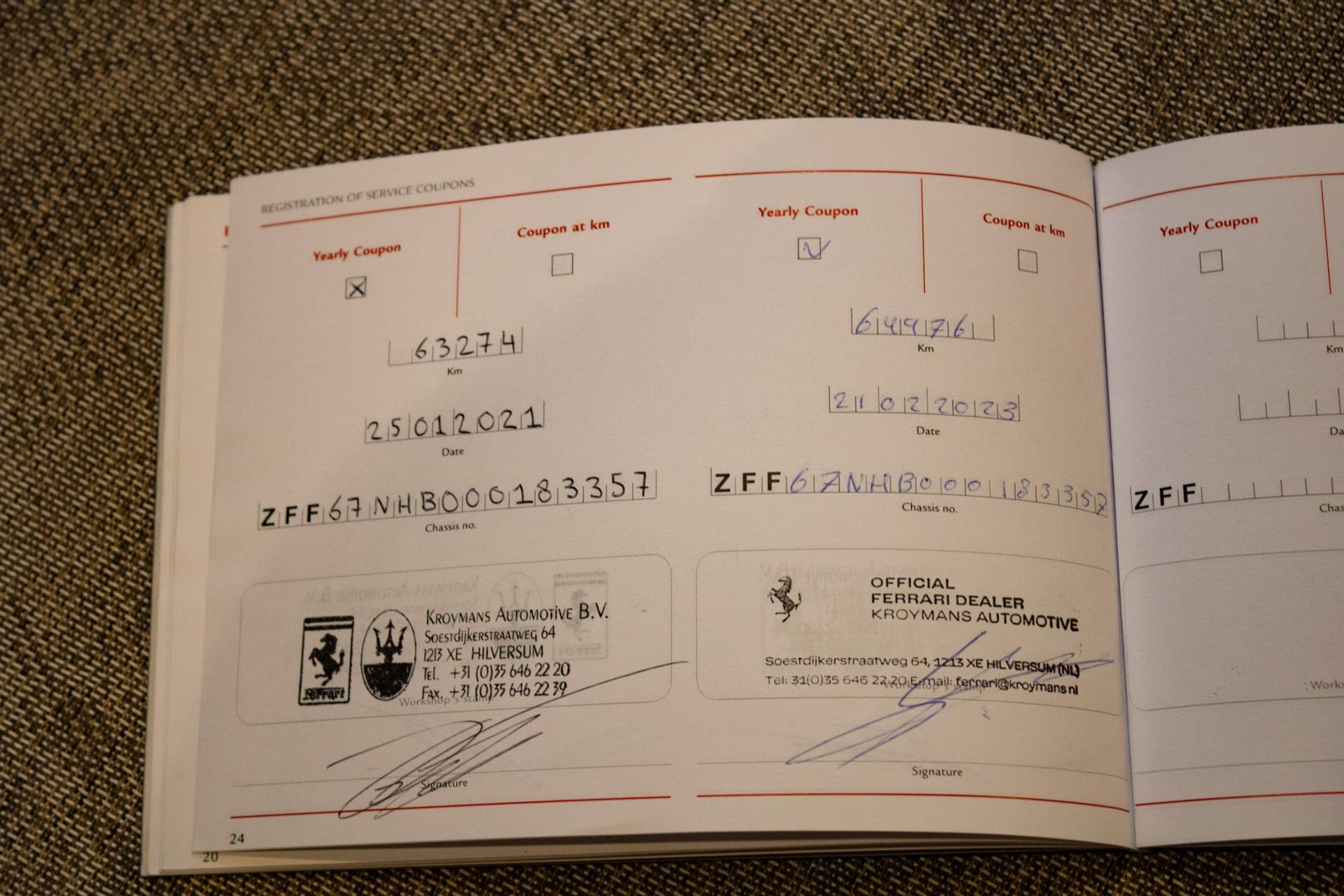 25-01-2021 63274 km year service Kroymans Automotive B.V. Ferrari dealer