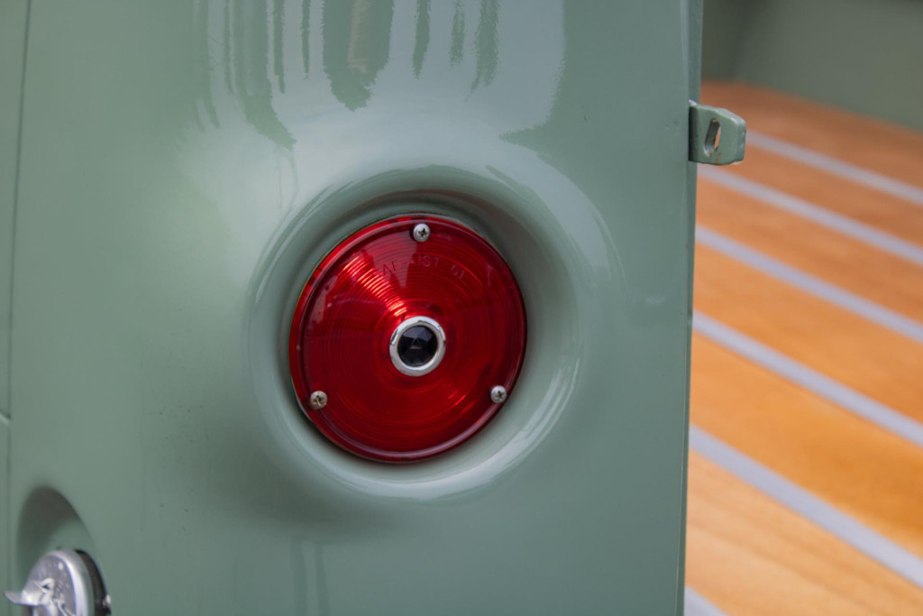 The paint is done in a stylish light olive green colour, beautifully combined with white accents that emphasise the classic lines. The cargo bay has been completely rebuilt with wood parts and aluminium strips, giving it an artisanal and high-quality look. As a finishing touch, this pick-up is fitted with Eagle Alloys alloy wheels and chrome mirrors, adding to its retro character.
