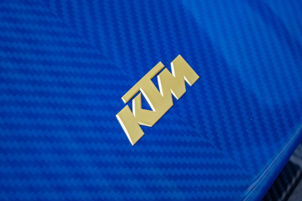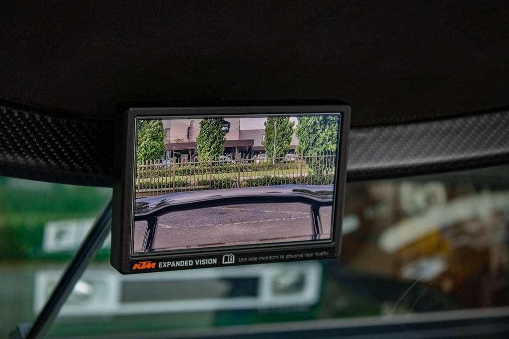 Dit exemplaar heeft slechts 27 testkilometers op de teller en verkeert in absolute nieuwstaat. De auto is bovendien tot in de details gepersonaliseerd met exclusieve goudkleurige accenten: zo zijn de velgen uitgevoerd in Gold Gloss, inclusief de KTM-logo’s op de wheelhub covers. Ook de remklauwen zijn uitgevoerd in RAL 9005 zwart met gouden logo’s. Verder zijn de vering, emblemen (binnen en buiten), stoelstiksels, sleepoog en de ‘100 Limited Edition’ badge allemaal afgewerkt in goud. De GT-XR staat op Pirelli P ZERO TROFEORACE semi-slicks, gemonteerd op 19 inch voor en 20 inch achter.