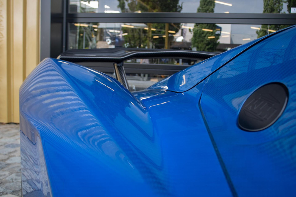 Bij de auto wordt een luxe indoor beschermhoes meegeleverd. Alles aan dit exemplaar straalt exclusiviteit en racegenen uit – maar dan geschikt voor de openbare weg.