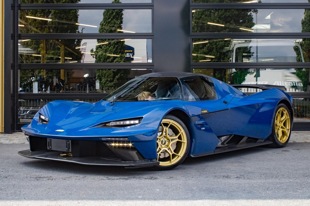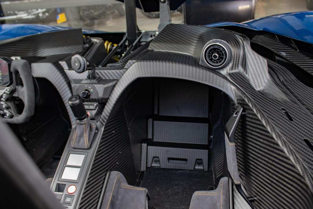 Een unieke en nieuwe KTM X-BOW GT-XR, nummer 47 van slechts 100 wereldwijd geproduceerde exemplaren. Deze straatlegale hypercar is uitgevoerd in een exclusieve, eenmalig geproduceerde lak genaamd Colored Carbon Spielberg Blue. De lak heeft een lichtdoorlaatbaarheid van 30,47%, waardoor de volledige carbon body zichtbaar blijft onder een diepe, metallic blauwe gloed. Deze lakoptie vertegenwoordigt een waarde van €35.000 en is slechts één keer toegepast – dit exemplaar is dus letterlijk uniek: een one-of-one.