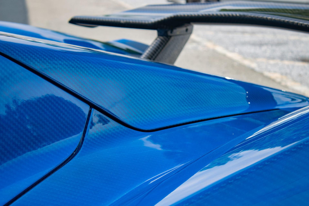 Ein einzigartiger und neuer KTM X-BOW GT-XR, Nummer 47 von nur 100 produzierten Fahrzeugen weltweit. Dieses straßenzugelassene Hypercar ist in einer exklusiven, einmaligen Lackierung namens Colored Carbon Spielberg Blue lackiert. Der Lack hat eine Lichtdurchlässigkeit von 30,47%, so dass die gesamte Karbonkarosserie in einem tiefen, metallischen Blau leuchtet. Diese Lackierung hat einen Wert von 35.000 Euro und wurde nur einmal aufgetragen - dieses Exemplar ist also buchstäblich einzigartig: ein Unikat.