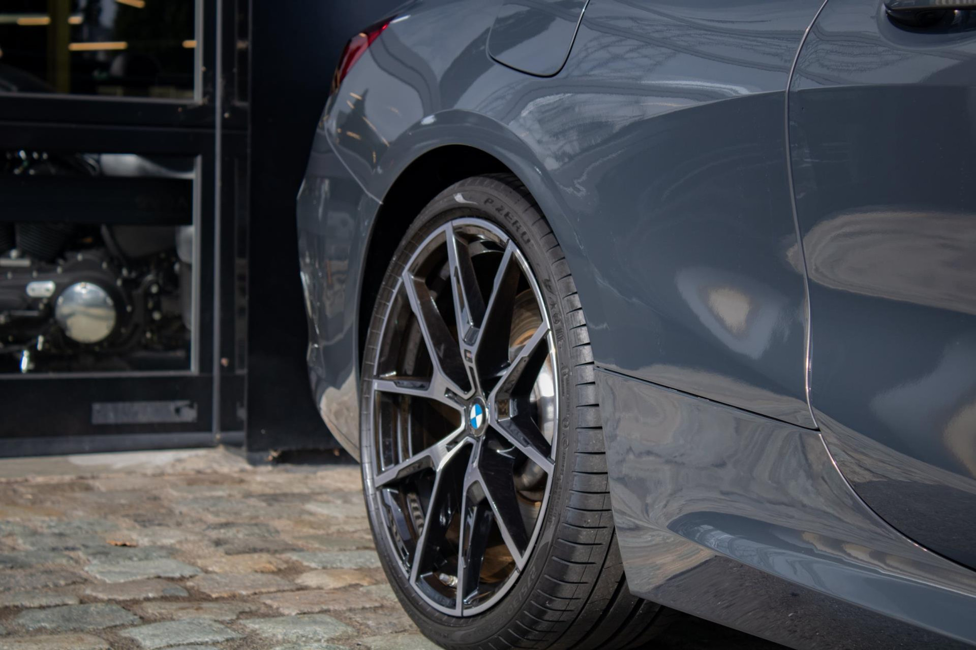 Het interieur is hoogwaardig uitgevoerd (o.a. lederen bekleding en M Sport-details), terwijl het exterieur met het M Sport-pakket en chique accenten een sportief-elegante uitstraling heeft.