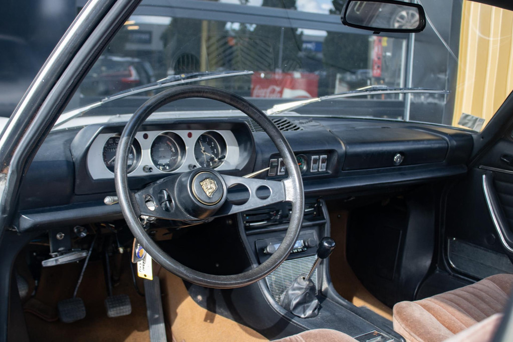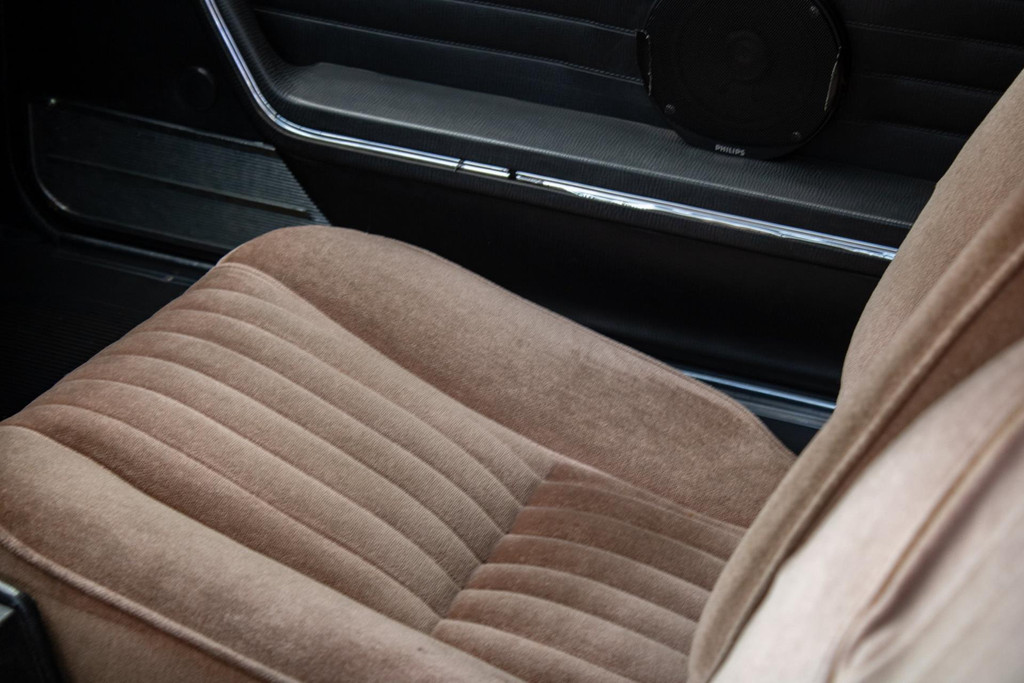 Uitgevoerd met Dunlop sportvelgen en nog steeds voorzien van zijn originele uitstraling, is dit een Peugeot 504 Coupé die zijn authenticiteit heeft behouden — precies wat dit model zo aantrekkelijk maakt.