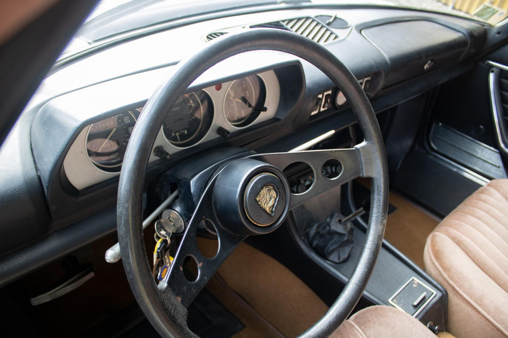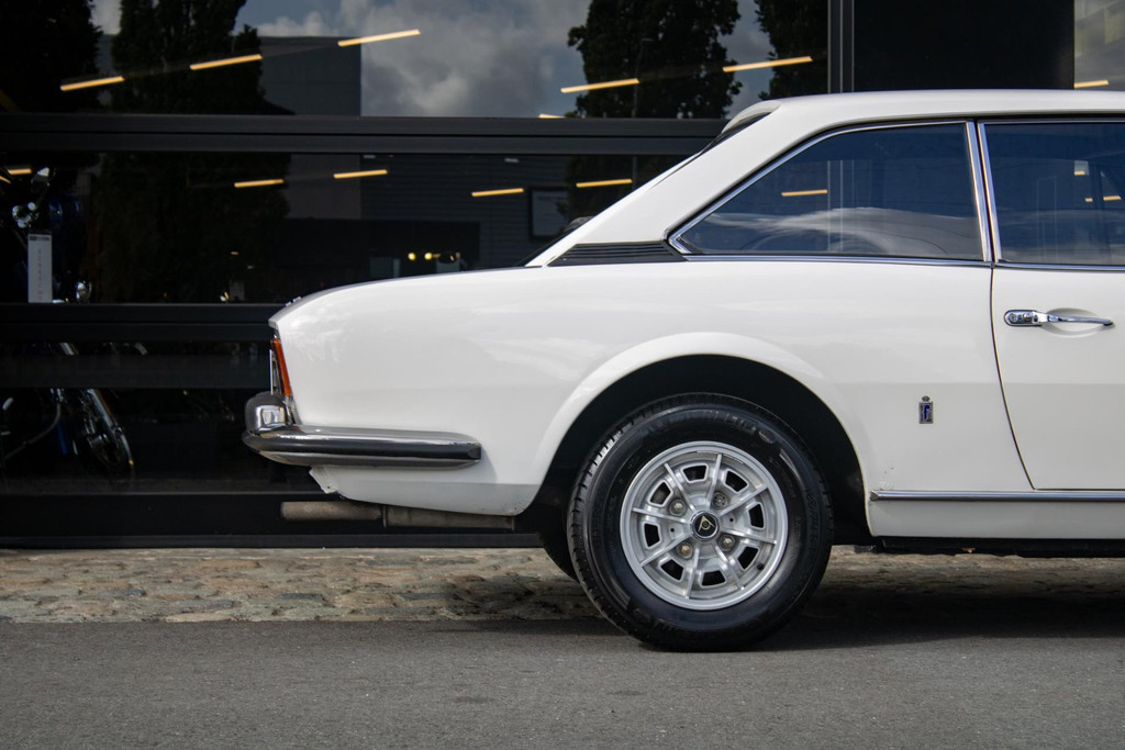 Uitgevoerd met Dunlop sportvelgen en nog steeds voorzien van zijn originele uitstraling, is dit een Peugeot 504 Coupé die zijn authenticiteit heeft behouden — precies wat dit model zo aantrekkelijk maakt.