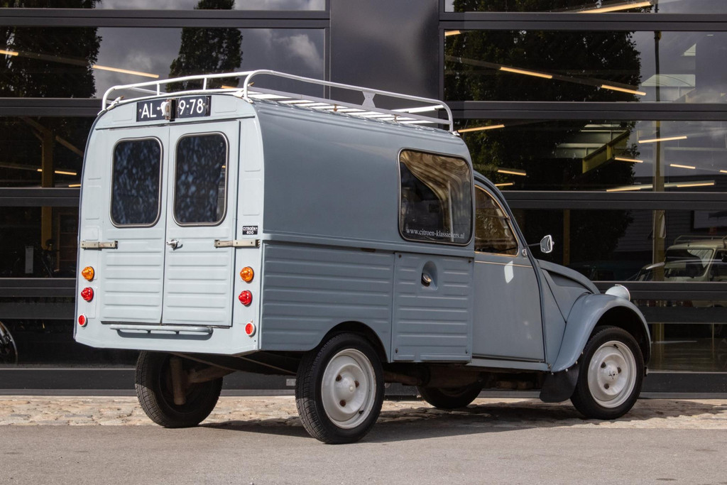Cette 2CV a débuté sa vie à Entraygues (Aveyron), Sud de la France, propriété du commerçant local Jules Serieys, qui l’utilisait pour livrer les bouteilles de gaz et transporter une échelle sur le toit pour cueillir des pommes dans son verger. Après son décès, le véhicule a été importé aux Pays-Bas par le propriétaire actuel, qui le possède depuis 26 ans. Peu après son acquisition, il a été soigneusement restauré par le réputé Château Deux Chevaux à Beesd.
