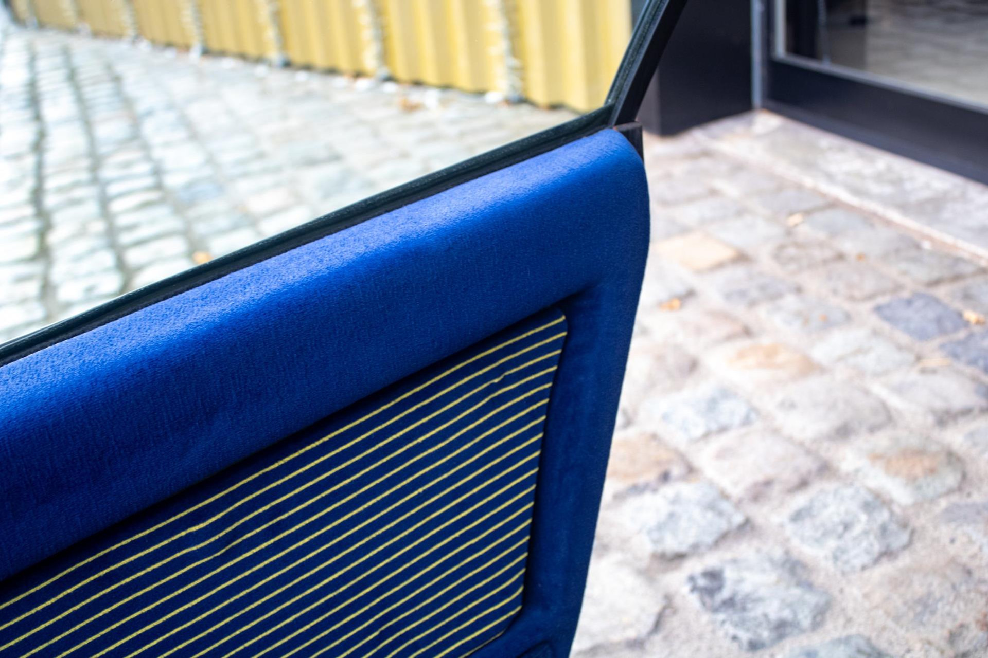 Upon arrival in the United Kingdom, the bodywork was professionally repainted by a specialist in plastic bodies – with a beautiful, durable result. The interior still features the original, flamboyant yellow/blue designer upholstery.