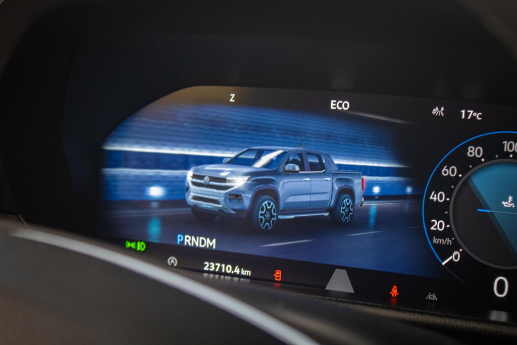 Dieser Amarok ist in Schwarz metallic mit Halbleder-/Alcantara-Innenausstattung ausgeführt. Angetrieben wird er vom 3.0 TDI V6 mit Automatikgetriebe und 4Motion-Allradantrieb. Als neueste Generation des Amarok verfügt er über eine moderne Ausstattung wie ein großes Touchscreen-Infotainmentsystem, ein digitales Armaturenbrett, eine 360°-Kamera, Keyless Entry & Start, adaptive Geschwindigkeitsregelung, Spurhalteassistent, elektrisch verstellbare Sitze und LED-Scheinwerfer.