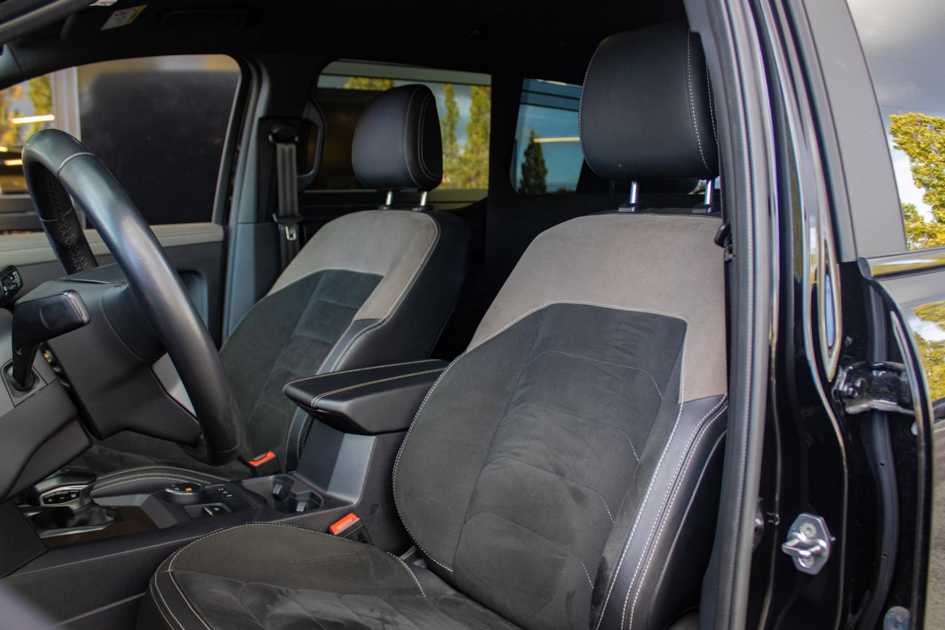 This Amarok is finished in black metallic with a half leather/Alcantara interior. Powered by the 3.0 TDI V6 with automatic transmission and 4Motion four-wheel drive. As the latest generation Amarok, it features modern equipment such as a large touchscreen infotainment system, digital instrument panel, 360° camera, keyless entry & start, adaptive cruise control, lane departure warning, electrically adjustable seats and LED headlights.