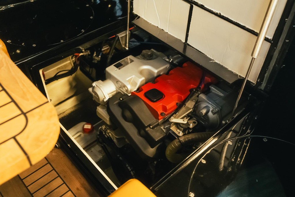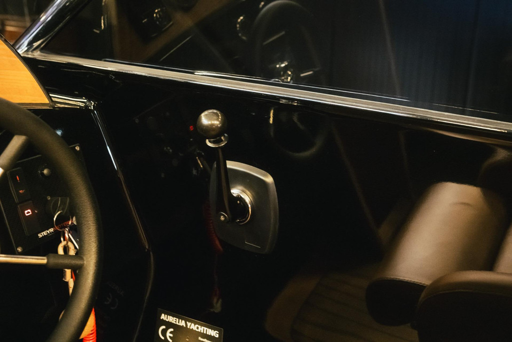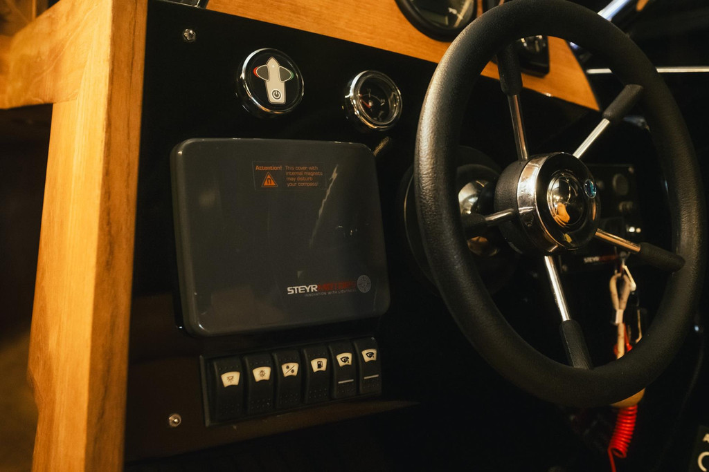 Onder de motorkap schuilt een krachtige Steyr 250 pk diesel binnenboordmotor met 6 cilinders, gecombineerd met een jet-aandrijving die acceleratie en wendbaarheid levert waar elke watersporter van droomt. De motor heeft slechts 44 draaiuren en wordt bestuurd via het Steyr Control Center, terwijl een geïntegreerde Zipwake trim-unit zorgt voor optimale stabiliteit en vaarcomfort. Elektrische start, stuurwielbesturing, enkel roer en een elektrische boegschroef maken manoeuvreren eenvoudig en intuïtief.