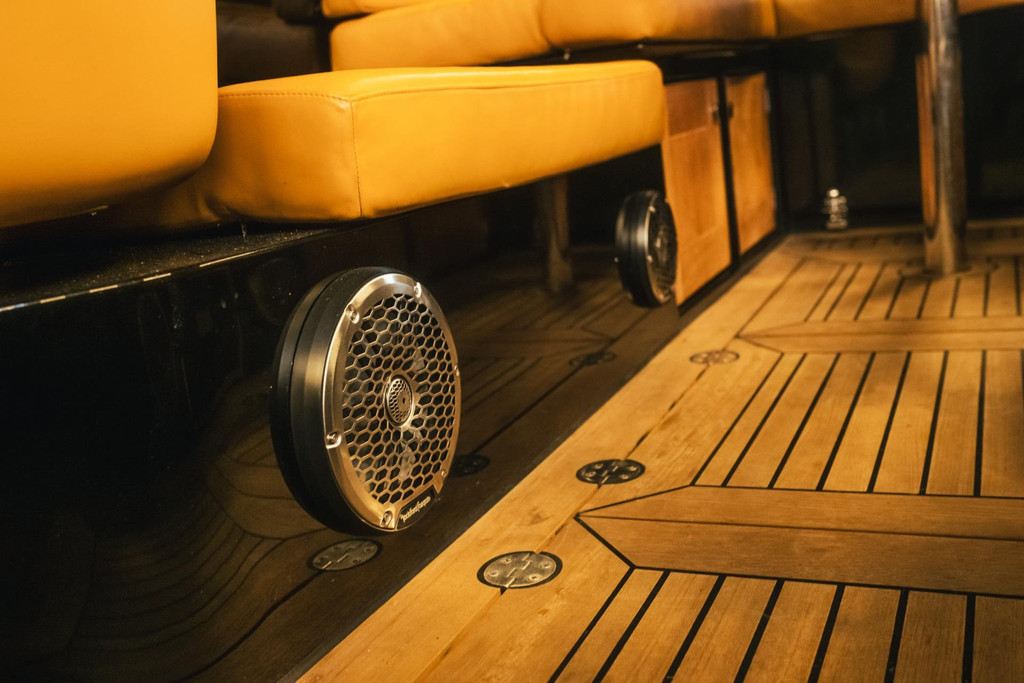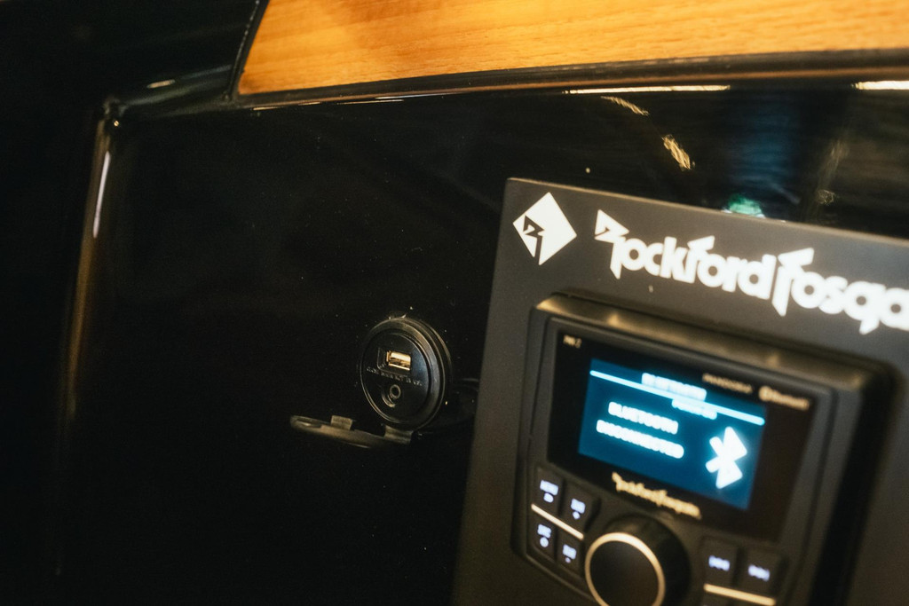 De Aurelia 780 is uitgerust met alle noodzakelijke instrumenten voor volledig vaarplezier: brandstoftankmeter, toerenteller, oliedrukmeter, temperatuurmeter, snelheidsmeter en trim-controlesysteem. Voor muziek en entertainment is er een premium Rockford Fosgate PMX-2 audio-installatie, inclusief Bluetooth en streamingfunctionaliteit.