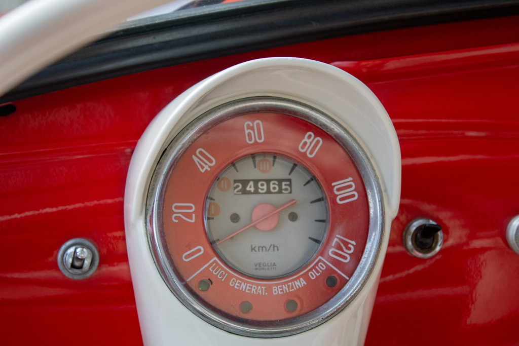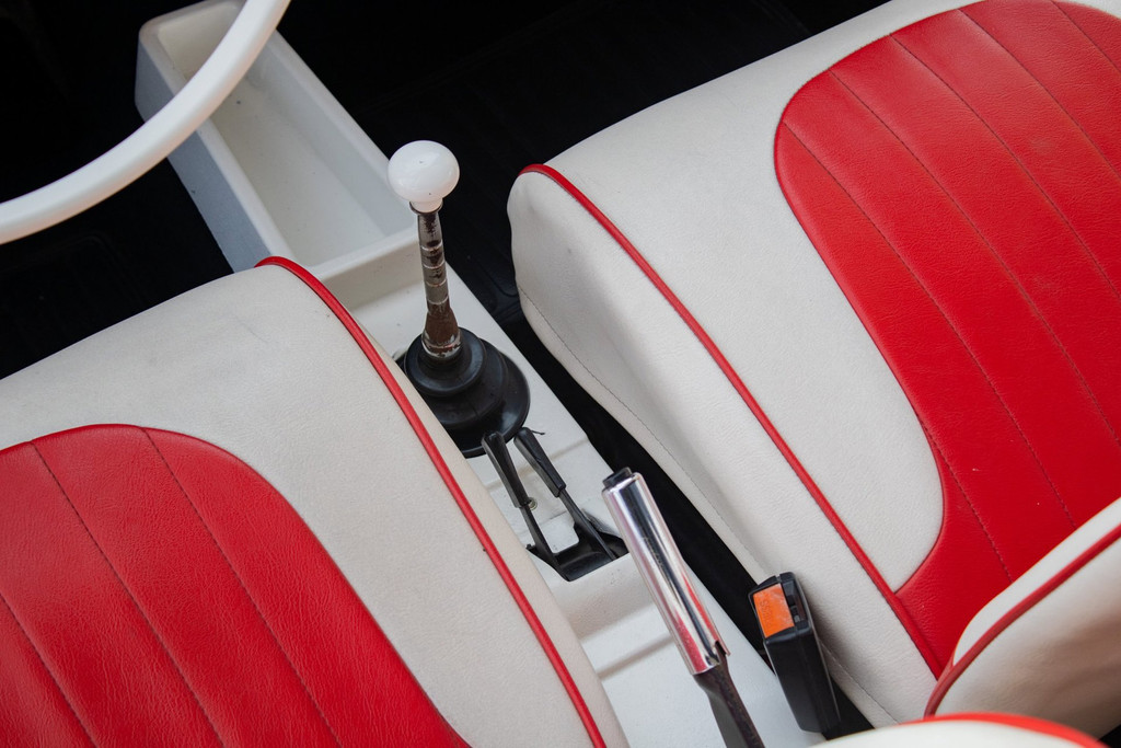 Lackiert in kräftigem Rot und kombiniert mit einem rot-weißen Lederinterieur, versprüht diese Jolly pure 60er-Jahre-Atmosphäre. Die cremefarbenen Felgen setzen einen harmonischen Kontrast und unterstreichen die klassische Linienführung. Der offene Charakter prägt das Fahrerlebnis — leicht, entspannt und stilvoll.