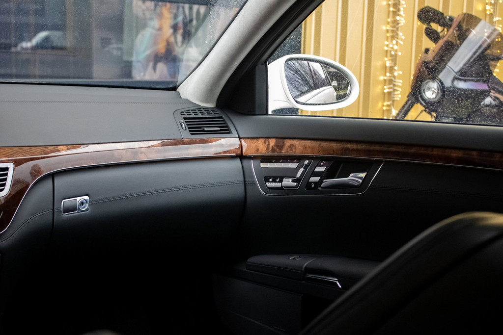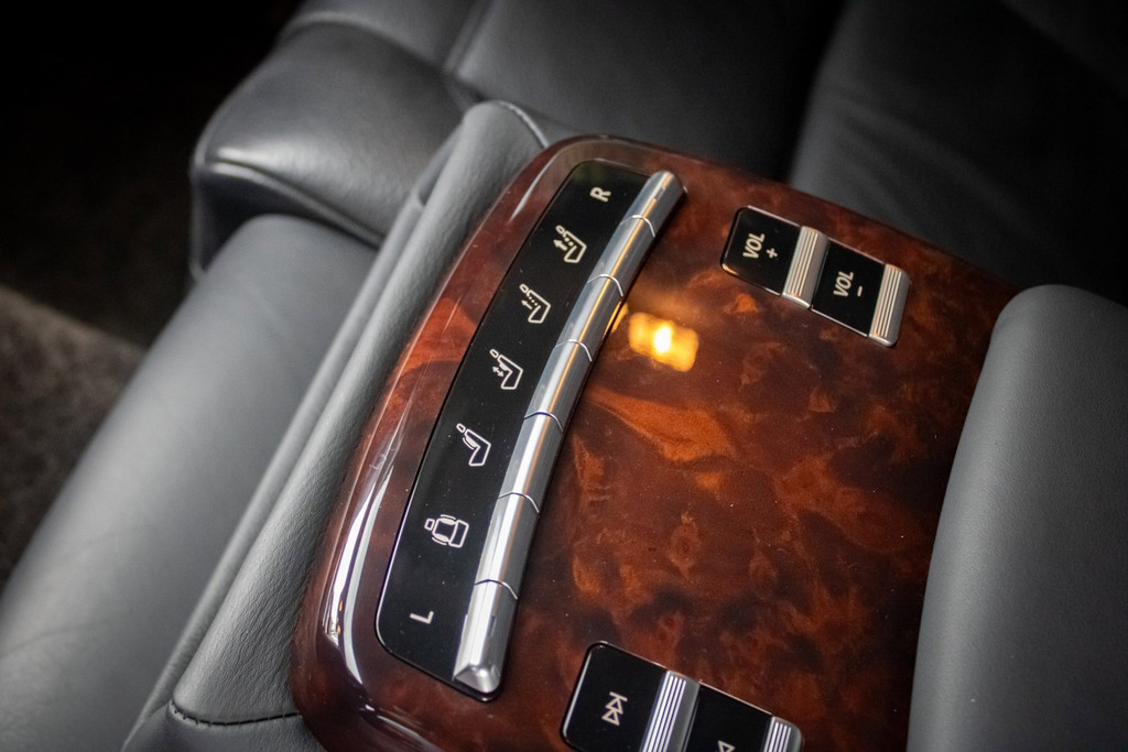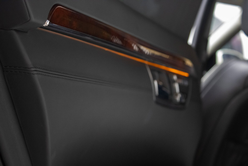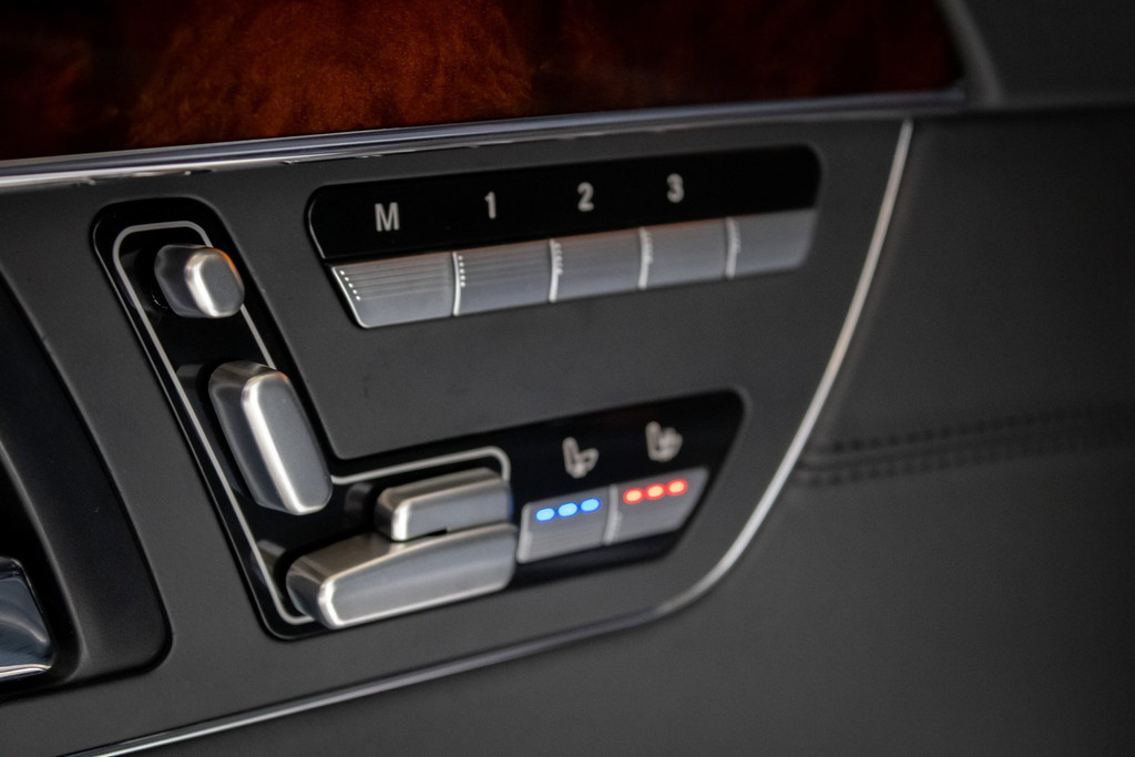 Durch den verlängerten Radstand bietet das Fahrzeug besonders hohen Komfort im Fond. Der Innenraum befindet sich ebenfalls in sehr gutem Zustand und ist ausgestattet mit elektrisch verstellbaren Sitzen mit Memory-Funktion, Sitzheizung und Belüftung, Multikontursitzen vorne und hinten, 4-Zonen-Klimaautomatik, Ambientebeleuchtung und edlen Holzeinlagen.