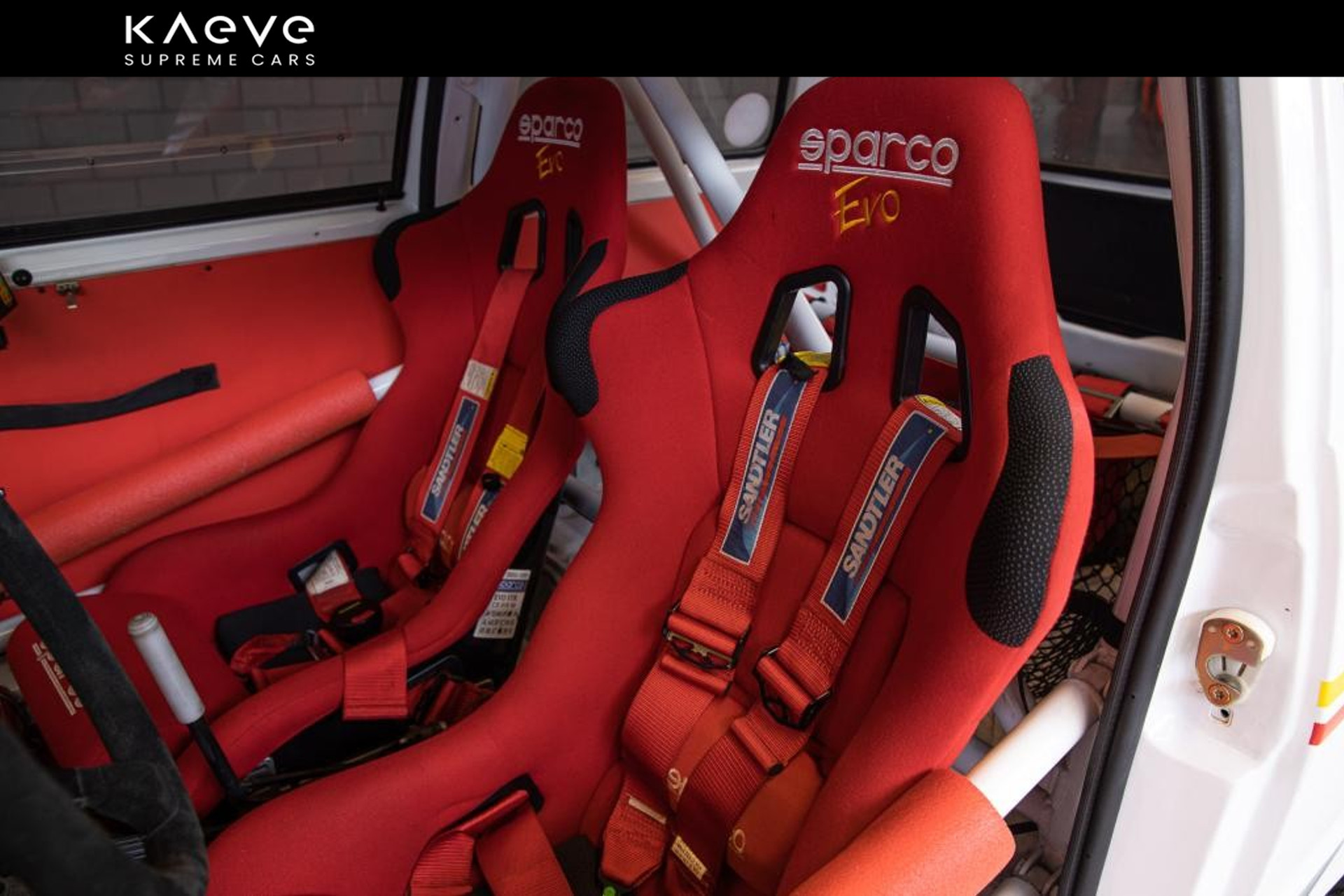 Color: White, with red Sparco racing seats and harnesses