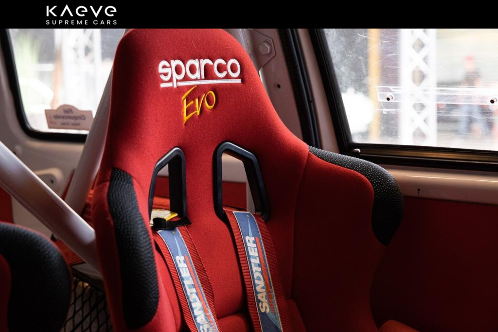 Farbe: Weiß, mit roten Sparco-Rennsitzen und Renngurten