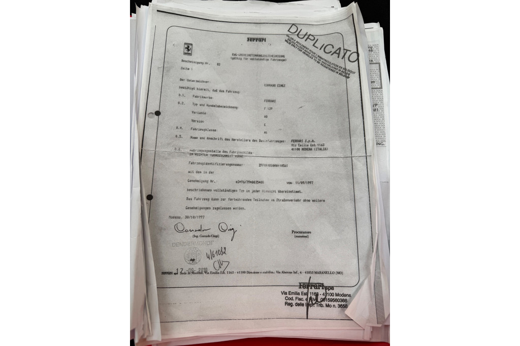 In 2020, a major service was carried out by Forza Ferrari Specialist, during which the complete drivetrain with subframe was removed and rebuilt. The work included replacement of the timing belts, exhaust manifolds, catalytic converters, suspension arm rubbers, and front tyres. In addition, the lighting, right seat, door window, convertible top, and ECU were repaired.