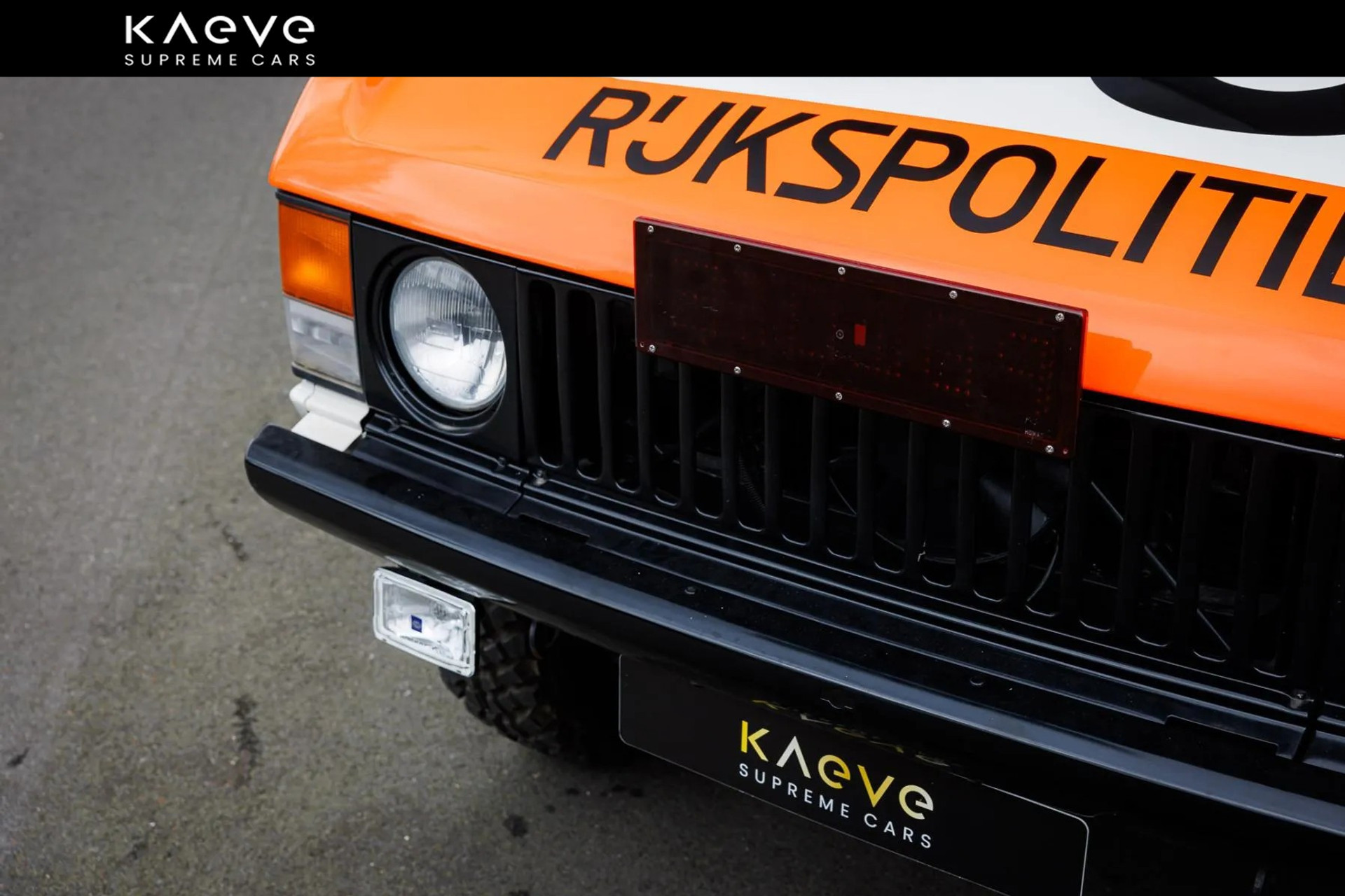 Das markante Erscheinungsbild des Range Rover Classic Coupé, wie das von 1980, diente nicht nur als funktionales Polizeifahrzeug, sondern auch als Symbol der Autorität auf den niederländischen Straßen. Die erkennbare weiße Karosserie mit orangefarbenen Streifen und Blinklichtern machte diese Fahrzeuge leicht zu identifizieren.