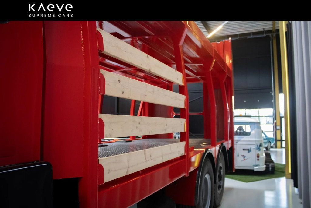 Volledig nieuw opgebouwde Ferrari transporter met laadklep waarmee op twee levels auto's geplaatst kunnen worden. Met unieke opties als nieuwe opbergkisten, handgeschilderde Ferrari schilden en houten frames is dit een prachtige 682N.