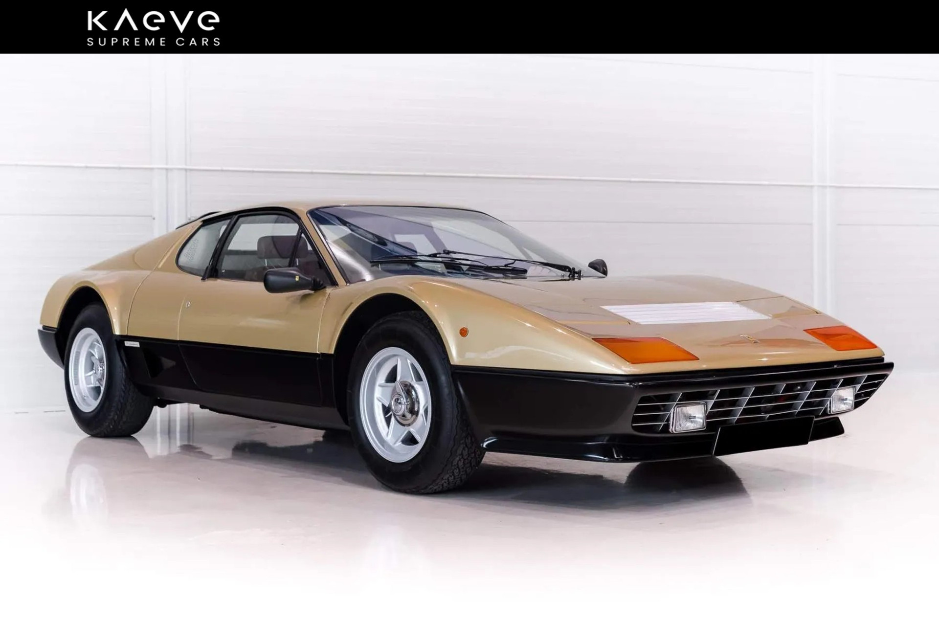 This particular example stands out with its rare Oro Chiaro Metalizzato (light gold metallic) paint and chic Marrone Castagna (chestnut brown) leather interior. The car is in top condition, from the bodywork to the original wheels, and the interior looks as if time has stood still. You feel the luxury as soon as you get in.