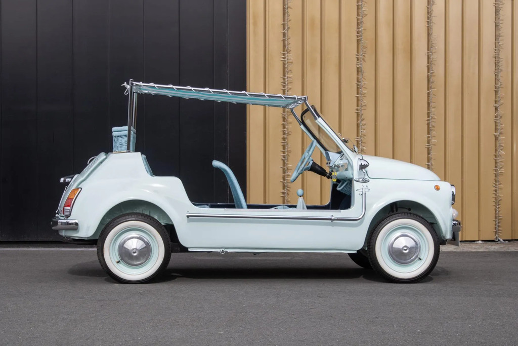 In 1958 kwam de Fiat 500 Jolly op de markt als een soort van minimalistisch boulevardspeeltje voor de rijken. Die auto was helemaal open, een stoffen dak en rieten stoelen. De naam Jolly, dat ‘Joker’ betekent in het Italiaans, werd gebruikt door de Italiaanse carrosseriebouwer Ghia, die vooral Fiat 500’s en 600’s ombouwde naar zulke strandautootjes. Dat idee kwam van Ghia-baas Gigi Segre, die vergelijkbare taxi-auto’s zag op dure vakantieresorts.