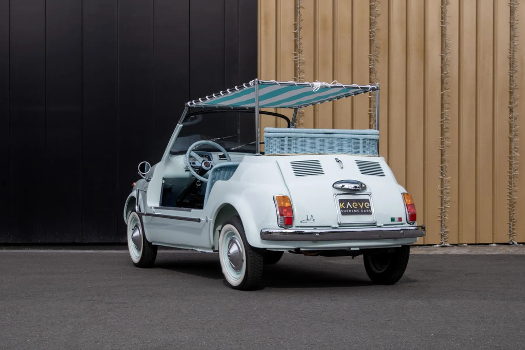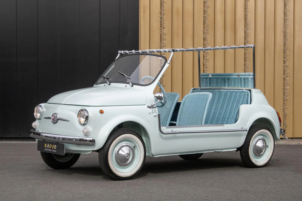 In 1958 kwam de Fiat 500 Jolly op de markt als een soort van minimalistisch boulevardspeeltje voor de rijken. Die auto was helemaal open, een stoffen dak en rieten stoelen. De naam Jolly, dat ‘Joker’ betekent in het Italiaans, werd gebruikt door de Italiaanse carrosseriebouwer Ghia, die vooral Fiat 500’s en 600’s ombouwde naar zulke strandautootjes. Dat idee kwam van Ghia-baas Gigi Segre, die vergelijkbare taxi-auto’s zag op dure vakantieresorts.