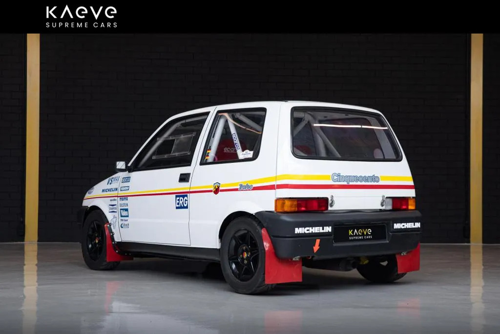 Met een gewicht van slechts 790 kg en 96 pk is deze Cinquecento een lichtgewicht rallyraket. De compromisloze 1.1 conversie en verfijnde raceonderdelen maken dit een unieke kans voor rally- en Fiat-liefhebbers.