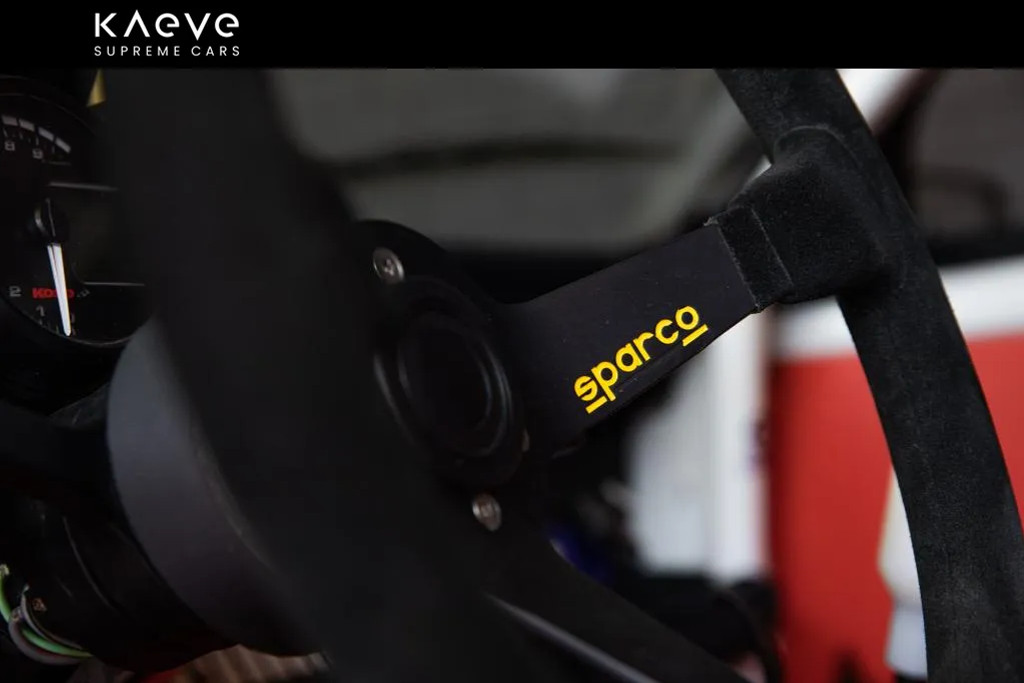 • Race-interieur met Sparco-stoelen, rolkooi en schakelaars voor elke elektrische functie.
