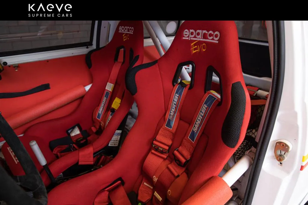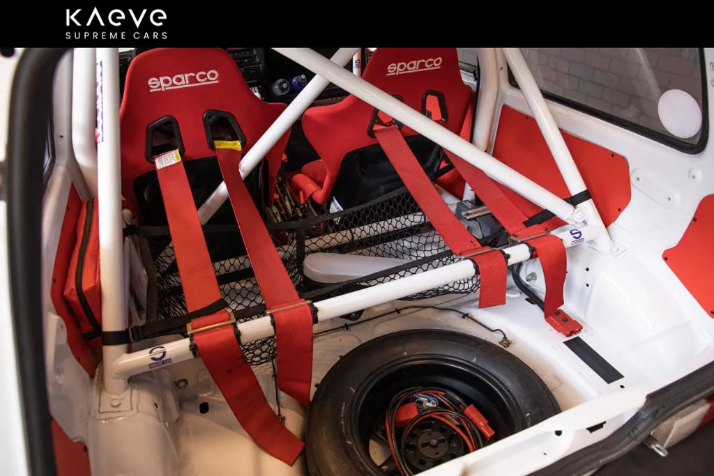 • Race-interieur met Sparco-stoelen, rolkooi en schakelaars voor elke elektrische functie.