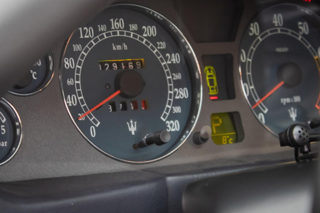 Mit nur 29.168 Kilometern befindet sich dieses Exemplar in ausgezeichnetem Originalzustand. Der Lack zeigt sich tief glänzend und makellos, das Interieur ist tadellos gepflegt, und sowohl Felgen als auch Reifen sind unbeschädigt. Alle Optionen und Ausstattungen funktionieren einwandfrei, während die Klimaanlage angenehm kühle Luft liefert – ein Beleg für die sorgfältige Pflege dieser Maserati.