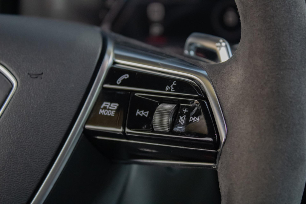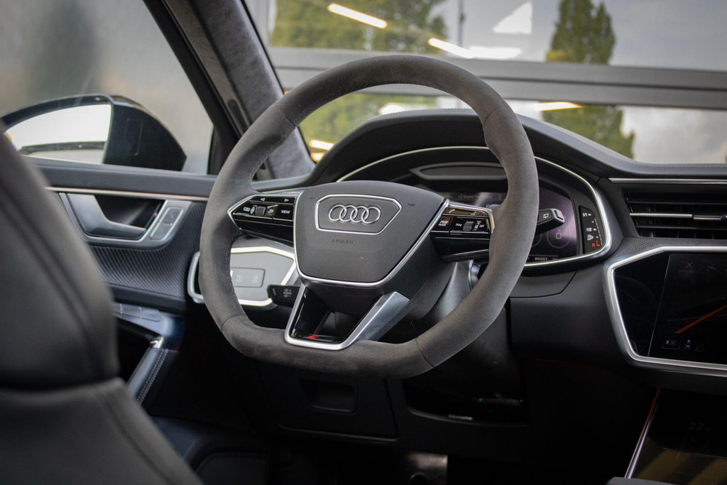 Het is een auto die direct laat zien waar Audi voor staat: een brute 4.0-liter twin-turbo V8, Dynamic Plus-uitvoering met een topsnelheid van 305 km/u en keramische remmen die zowel krachtig als visueel indrukwekkend zijn. Het RS sportonderstel met Dynamic Ride Control voelt als een verlengstuk van de bestuurder – direct, communicatief en met een balans die je zelden tegenkomt in een auto met luchtvering. Vierwielsturing maakt hem wendbaar in de stad en feilloos stabiel op hoge snelheid.