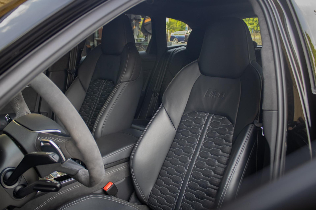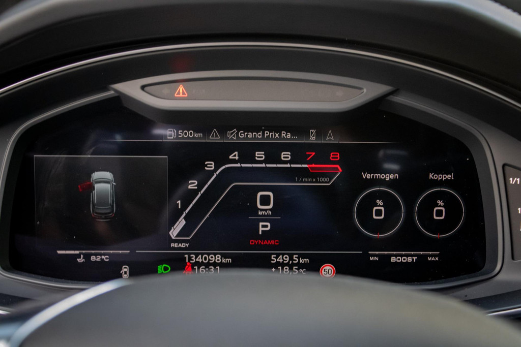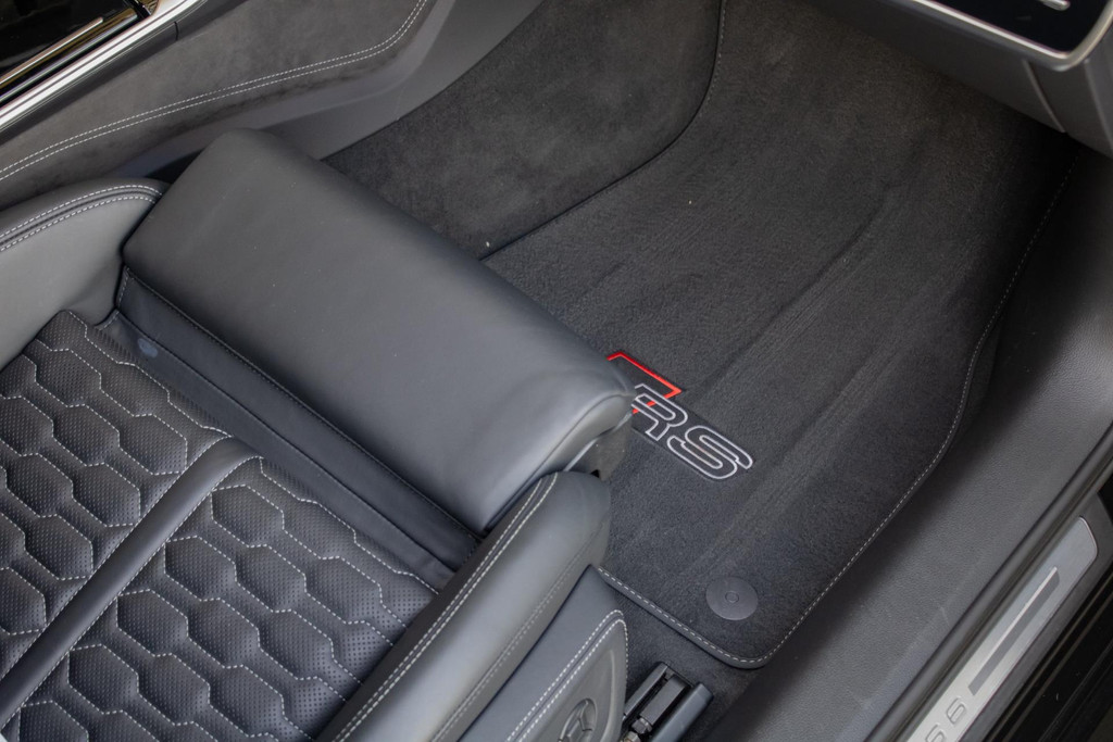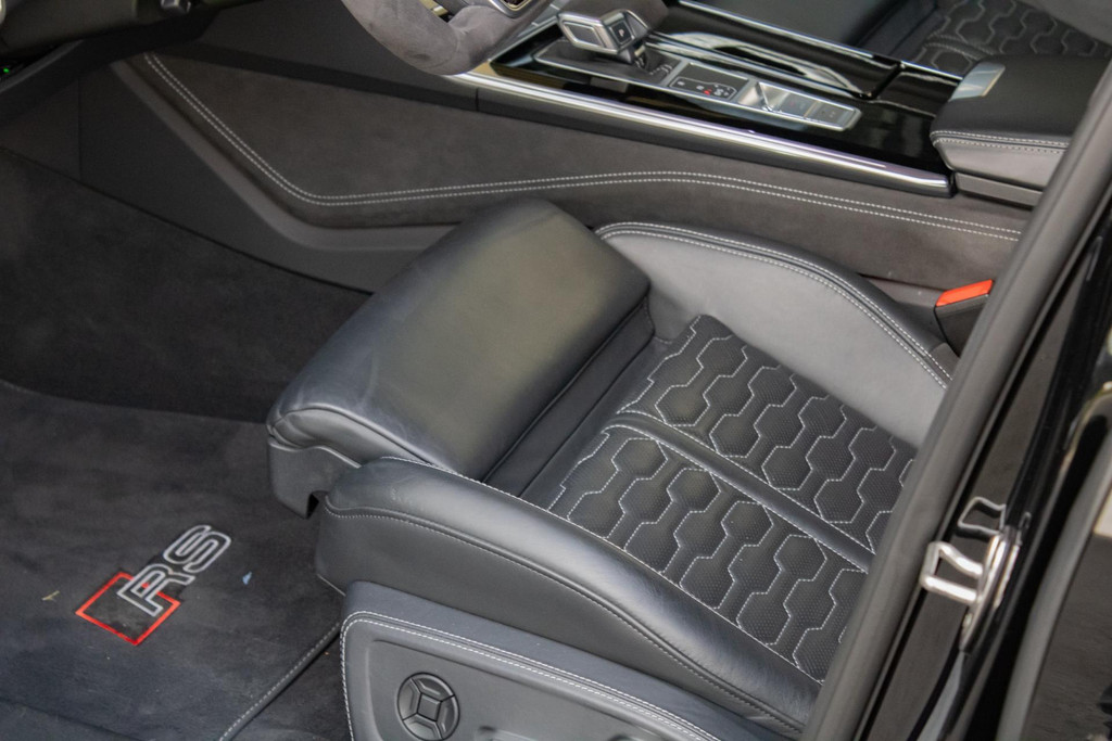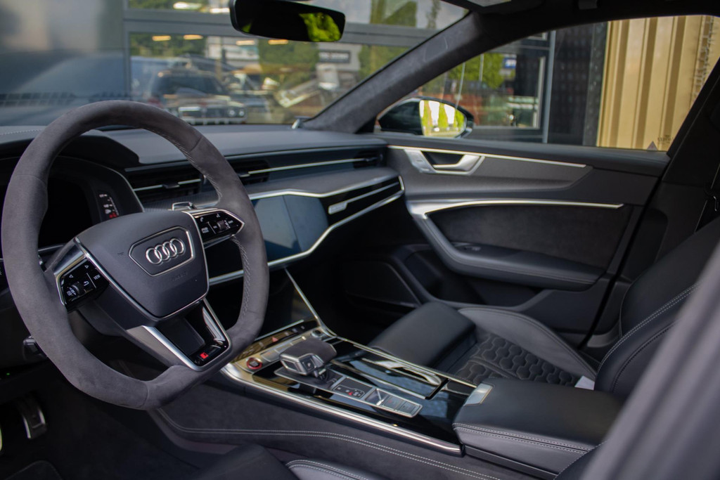 Het is een auto die direct laat zien waar Audi voor staat: een brute 4.0-liter twin-turbo V8, Dynamic Plus-uitvoering met een topsnelheid van 305 km/u en keramische remmen die zowel krachtig als visueel indrukwekkend zijn. Het RS sportonderstel met Dynamic Ride Control voelt als een verlengstuk van de bestuurder – direct, communicatief en met een balans die je zelden tegenkomt in een auto met luchtvering. Vierwielsturing maakt hem wendbaar in de stad en feilloos stabiel op hoge snelheid.