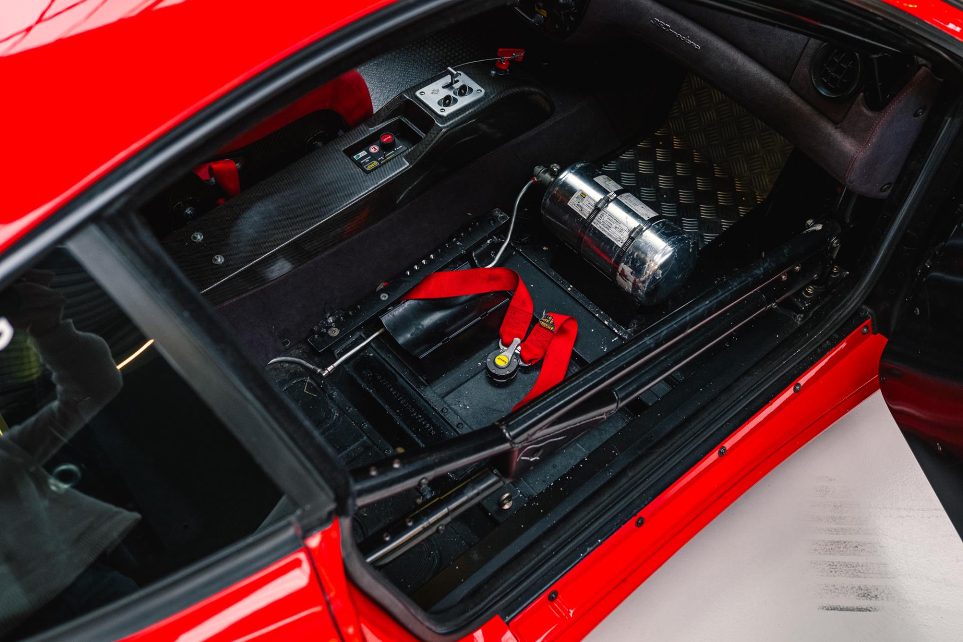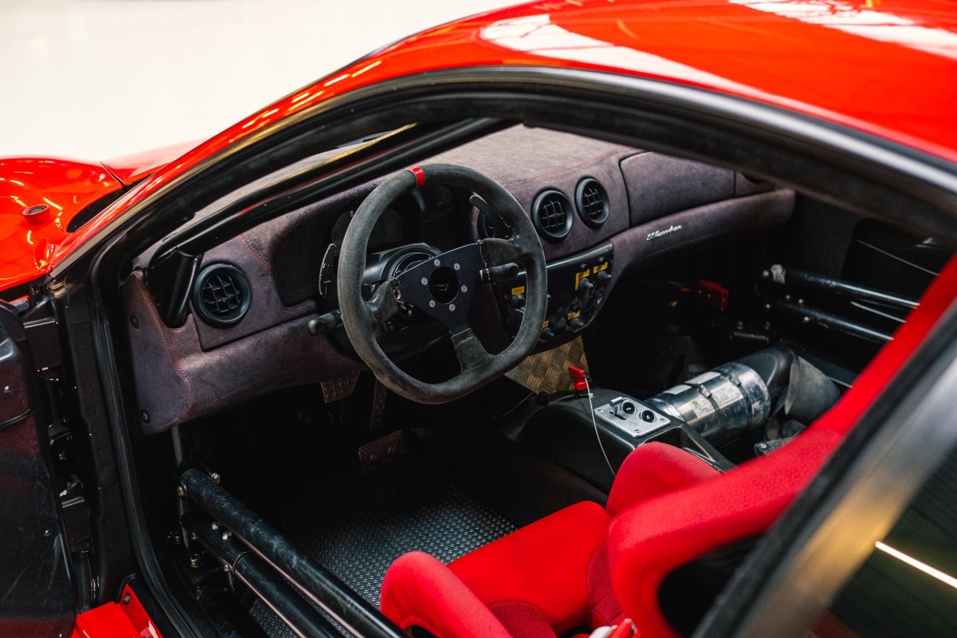 The 360 Challenge featured race-oriented modifications such as a roll cage, FIA-approved seat belts, a fire extinguishing system and a stripped interior with no comfort features .